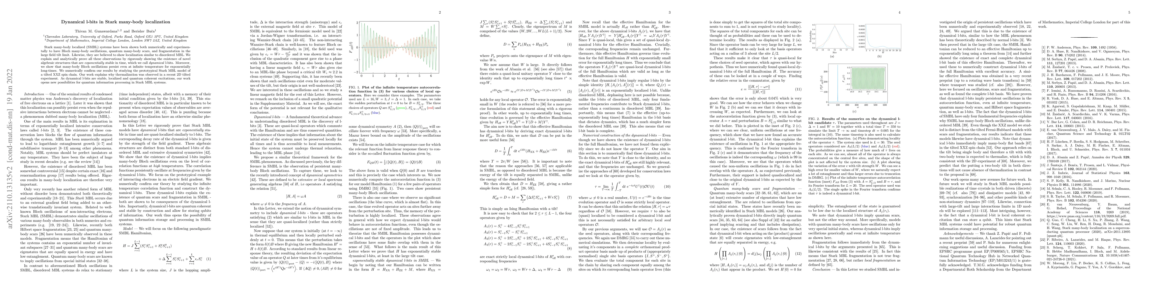This paper analytically proves the existence of novel "dynamical l-bits" in Stark many-body localized systems, which are exponentially stable algebraic structures explaining Bloch oscillations, quantum scars, and localization. Numerical results on a tilted XXZ spin chain confirm these findings and suggest potential applications in quantum information processing.