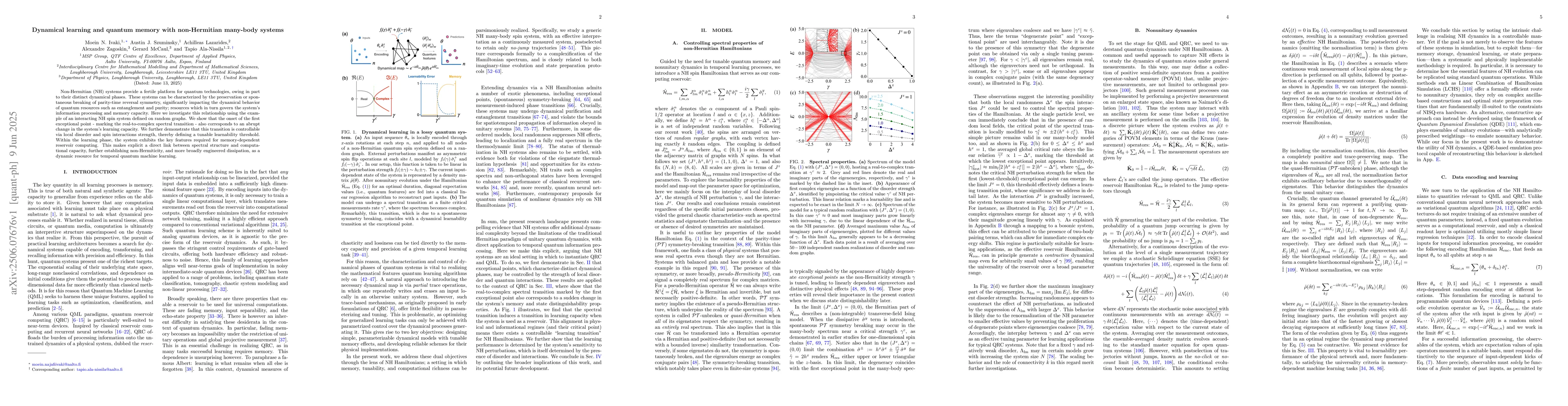 This research explores non-Hermitian quantum systems' dynamical behavior and their potential for quantum learning and memory. It reveals that the first exceptional point, signifying a spectral shift, also indicates a sudden change in learning capacity, which can be controlled via disorder and interaction strengths, establishing non-Hermiticity as a dynamic resource for quantum machine learning.
