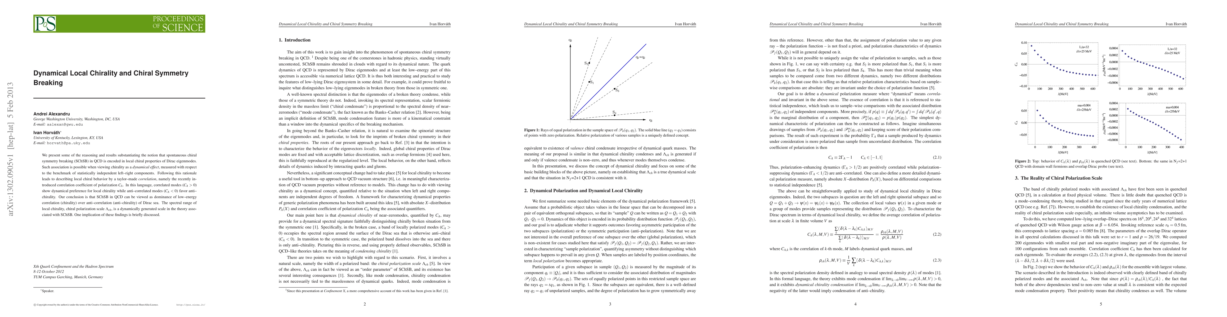We present some of the reasoning and results substantiating the notion that spontaneous chiral symmetry breaking (SChSB) in QCD is encoded in local chiral properties of Dirac eigenmodes. Such association is possible when viewing chirality as a dynamical effect, measured with respect to the benchmark of statistically independent left-right components. Following this rationale leads to describing local chiral behavior by a taylor-made correlation, namely the recently introduced correlation coefficient of polarization C_A. In this language, correlated modes (C_A>0) show dynamical preference for local chirality while anti-correlated modes (C_A<0) favor anti-chirality. Our conclusion is that SChSB in QCD can be viewed as dominance of low-energy correlation (chirality) over anti-correlation (anti-chirality) of Dirac sea. The spectral range of local chirality, chiral polarization scale Lambda_ch, is a dynamically generated scale in the theory associated with SChSB. One implication of these findings is briefly discussed.