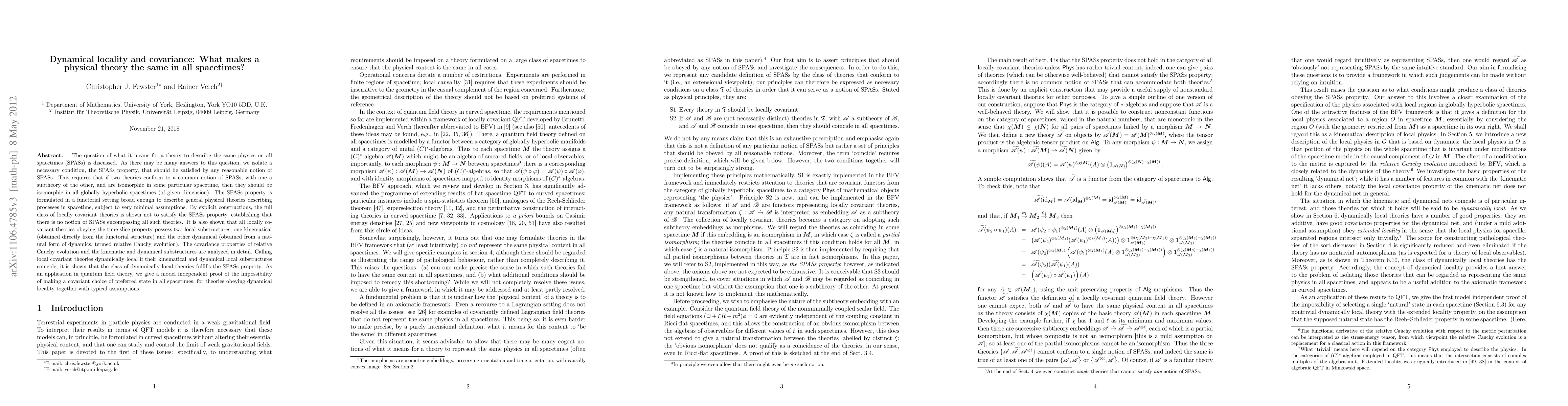 The question of what it means for a theory to describe the same physics on all spacetimes (SPASs) is discussed. As there may be many answers to this question, we isolate a necessary condition, the SPASs property, that should be satisfied by any reasonable notion of SPASs. This requires that if two theories conform to a common notion of SPASs, with one a subtheory of the other, and are isomorphic in some particular spacetime, then they should be isomorphic in all globally hyperbolic spacetimes (of given dimension). The SPASs property is formulated in a functorial setting broad enough to describe general physical theories describing processes in spacetime, subject to very minimal assumptions. By explicit constructions, the full class of locally covariant theories is shown not to satisfy the SPASs property, establishing that there is no notion of SPASs encompassing all such theories. It is also shown that all locally covariant theories obeying the time-slice property possess two local substructures, one kinematical (obtained directly from the functorial structure) and the other dynamical (obtained from a natural form of dynamics, termed relative Cauchy evolution). The covariance properties of relative Cauchy evolution and the kinematic and dynamical substructures are analyzed in detail. Calling local covariant theories dynamically local if their kinematical and dynamical local substructures coincide, it is shown that the class of dynamically local theories fulfills the SPASs property. As an application in quantum field theory, we give a model independent proof of the impossibility of making a covariant choice of preferred state in all spacetimes, for theories obeying dynamical locality together with typical assumptions.