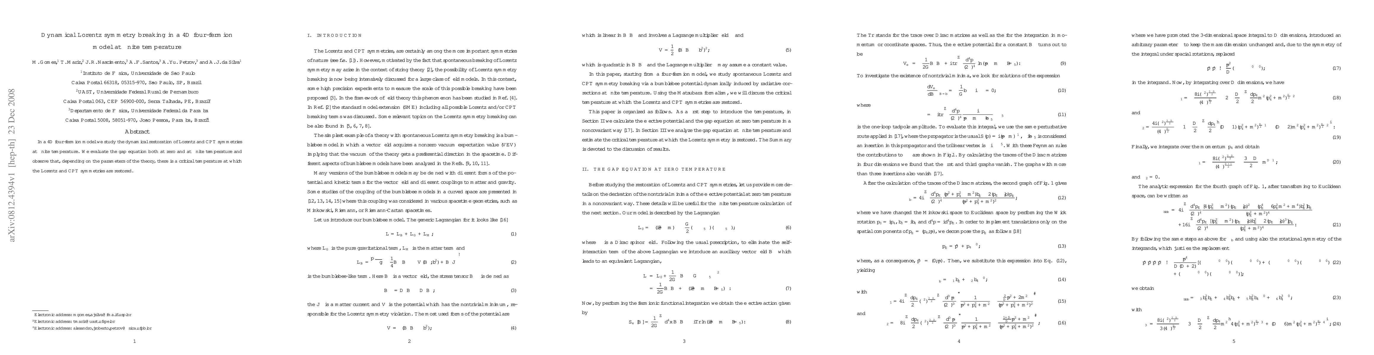 Summary: This study investigates a 4D four-fermion model to determine the dynamical restoration of Lorentz and CPT symmetries at finite temperatures. It finds a critical temperature where these symmetries are restored, depending on the model's parameters.