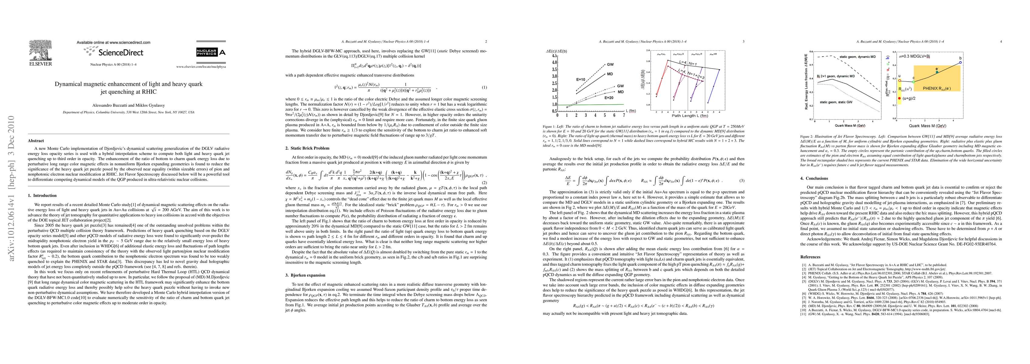 A new Monte Carlo implementation of Djordjevic's dynamical scattering generalization of the DGLV radiative energy loss opacity series is used with a hybrid interpolation scheme to compute both light and heavy quark jet quenching up to third order in opacity. The enhancement of the ratio of bottom to charm quark energy loss due to perturbative long range color magnetic effects in nonuniform Bjorken expanding geometries is found to reduce the significance of the heavy quark jet puzzle posed by the observed near equality (within sizeable errors) of pion and nonphotonic electron nuclear modification at RHIC. Jet Flavor Spectroscopy discussed below will be a powerful tool to differentiate competing dynamical models of the QGP produced in ultra-relativistic nuclear collisions.