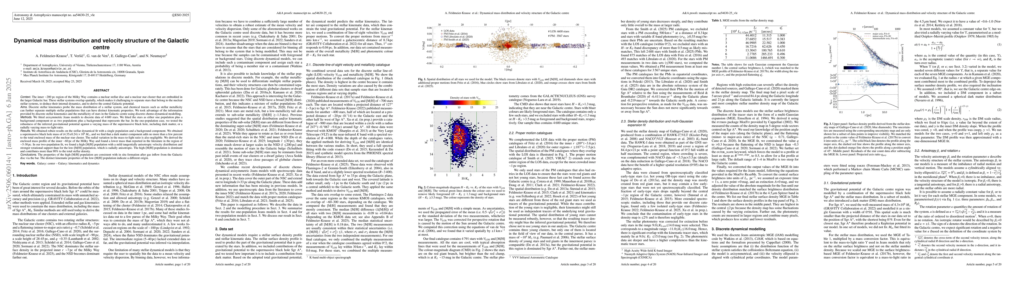 Researchers used discrete stellar kinematics and chemical tracers to study the Galactic centre, finding a supermassive black hole mass of 4.35 million solar masses and evidence for two distinct stellar populations with different origins.