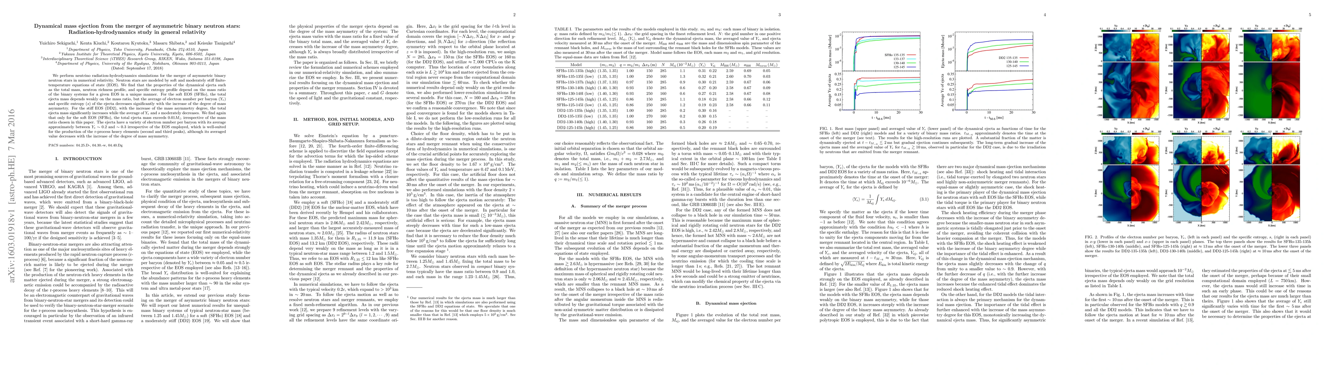 Simulations of neutron star mergers reveal that dynamical ejecta mass depends on mass ratio and EOS, with soft EOS producing more massive ejecta; the average electron number per baryon is around 0.2-0.3, suitable for r-process heavy elements production.