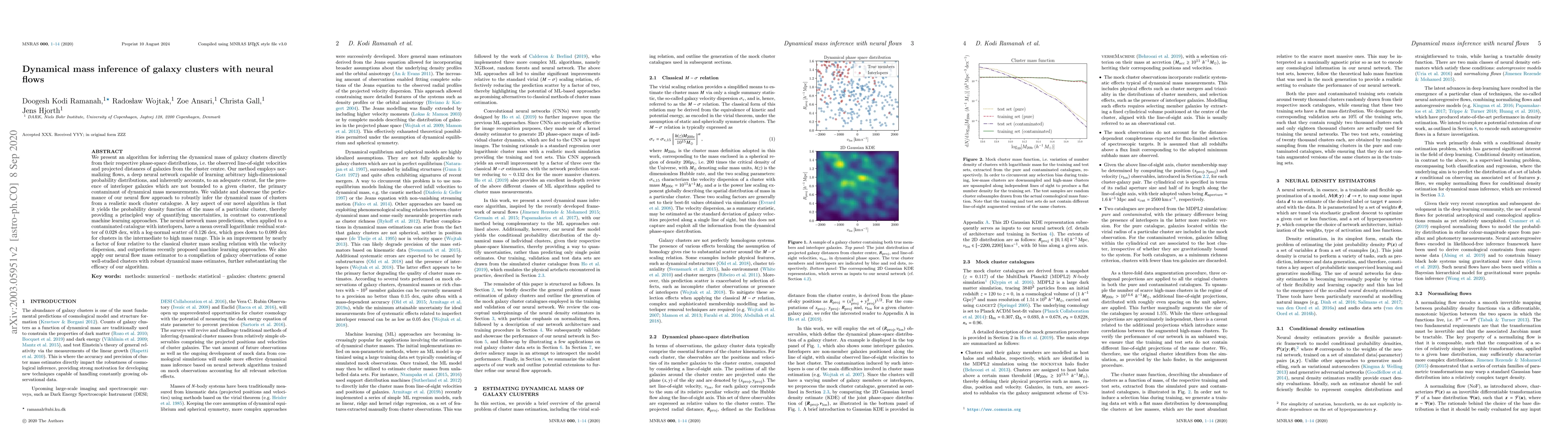 We present an algorithm for inferring the dynamical mass of galaxy clusters directly from their respective phase-space distributions, i.e. the observed line-of-sight velocities and projected distances of galaxies from the cluster centre. Our method employs normalizing flows, a deep neural network capable of learning arbitrary high-dimensional probability distributions, and inherently accounts, to an adequate extent, for the presence of interloper galaxies which are not bounded to a given cluster, the primary contaminant of dynamical mass measurements. We validate and showcase the performance of our neural flow approach to robustly infer the dynamical mass of clusters from a realistic mock cluster catalogue. A key aspect of our novel algorithm is that it yields the probability density function of the mass of a particular cluster, thereby providing a principled way of quantifying uncertainties, in contrast to conventional machine learning approaches. The neural network mass predictions, when applied to a contaminated catalogue with interlopers, have a mean overall logarithmic residual scatter of 0.028 dex, with a log-normal scatter of 0.126 dex, which goes down to 0.089 dex for clusters in the intermediate to high mass range. This is an improvement by nearly a factor of four relative to the classical cluster mass scaling relation with the velocity dispersion, and outperforms recently proposed machine learning approaches. We also apply our neural flow mass estimator to a compilation of galaxy observations of some well-studied clusters with robust dynamical mass estimates, further substantiating the efficacy of our algorithm.