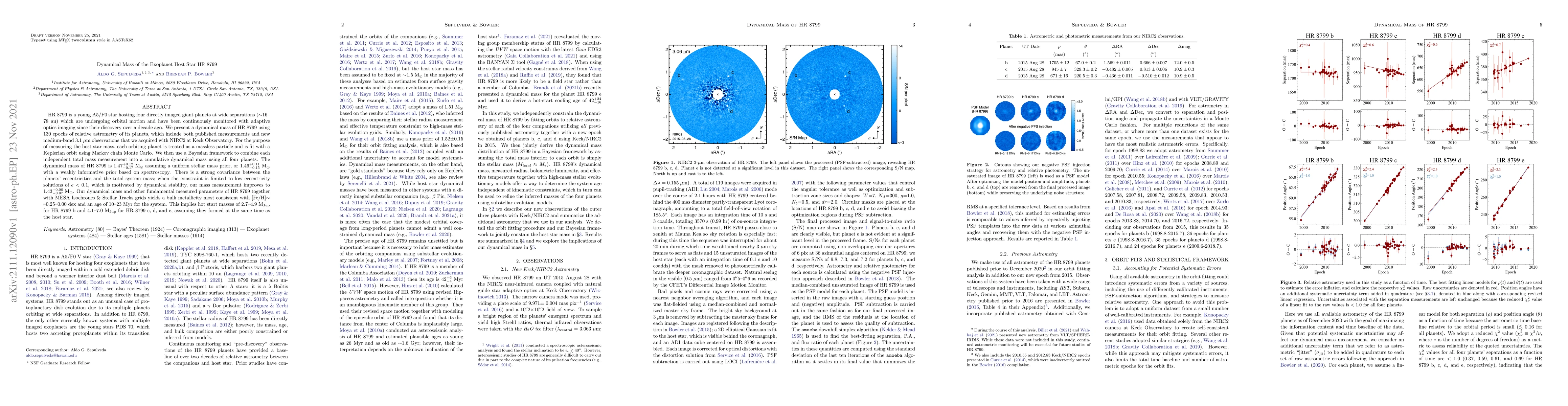 The dynamical mass of the star HR 8799, hosting four directly imaged exoplanets, is measured to be 1.47$^{+0.12}_{-0.17}$ \Msun using relative astrometry from its planets. The mass estimate improves to 1.43$^{+0.06}_{-0.07}$ \Msun when considering only low eccentricity orbits.