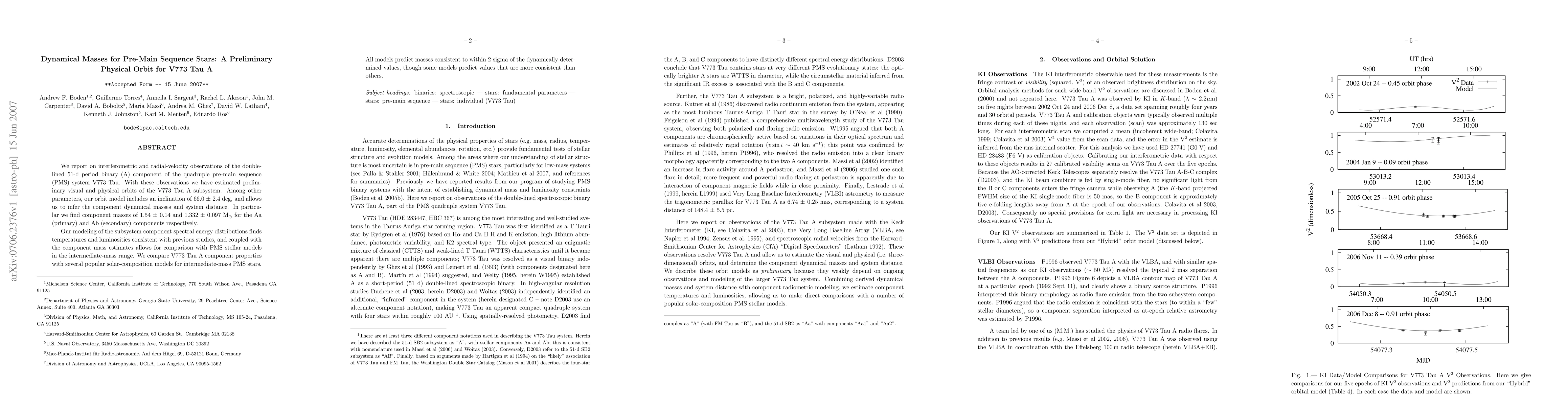 This paper reports on interferometric and radial-velocity observations of the binary system V773 Tau A, estimating its physical orbit and dynamical masses of 1.54 ± 0.14 and 1.332 ± 0.097 M$_{\sun}$ for the components, respectively. The findings align with intermediate-mass pre-main sequence stellar models.