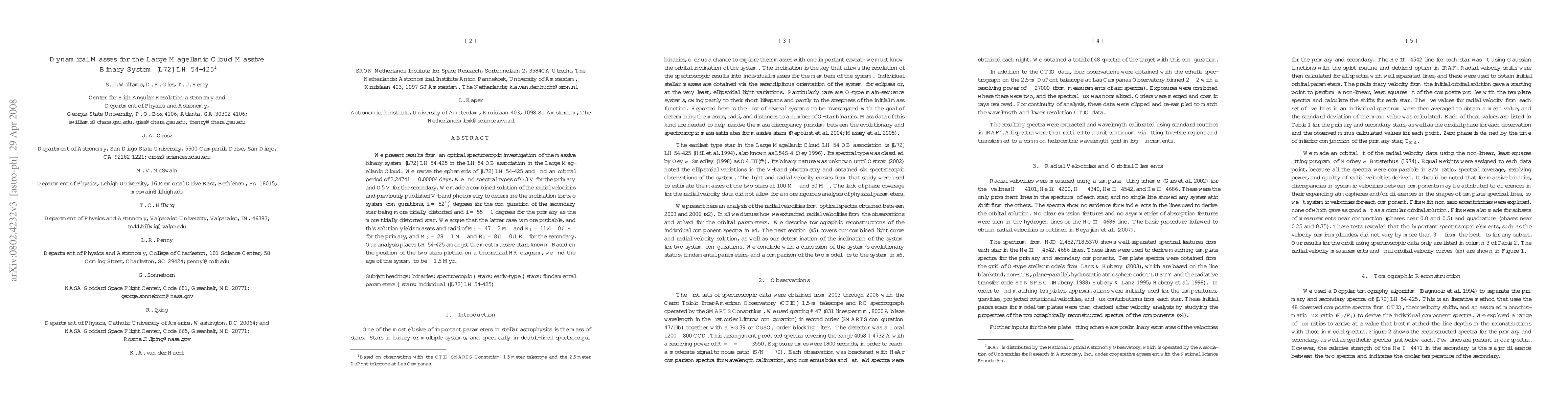 We present results from an optical spectroscopic investigation of the massive binary system [L72] LH~54-425 in the LH 54 OB association in the Large Magellanic Cloud. We revise the ephemeris of [L72] LH 54-425 and find an orbital period of 2.247409 +/- 0.000010 days. We find spectral types of O3 V for the primary and O5 V for the secondary. We made a combined solution of the radial velocities and previously published V-band photometry to determine the inclination for two system configurations, i = 52 degrees for the configuration of the secondary star being more tidally distorted and i = 55 degrees for the primary as the more tidally distorted star. We argue that the latter case is more probable, and this solution yields masses and radii of M_1 = 47 +/- 2 M_Sun and R_1 = 11.4 +/- 0.1 R_Sun for the primary, and M_2 = 28 +/- 1 M_Sun and R_2 = 8.1 +/- 0.1 R_Sun for the secondary. Our analysis places LH 54-425 amongst the most massive stars known. Based on the position of the two stars plotted on a theoretical HR diagram, we find the age of the system to be about 1.5 Myr.