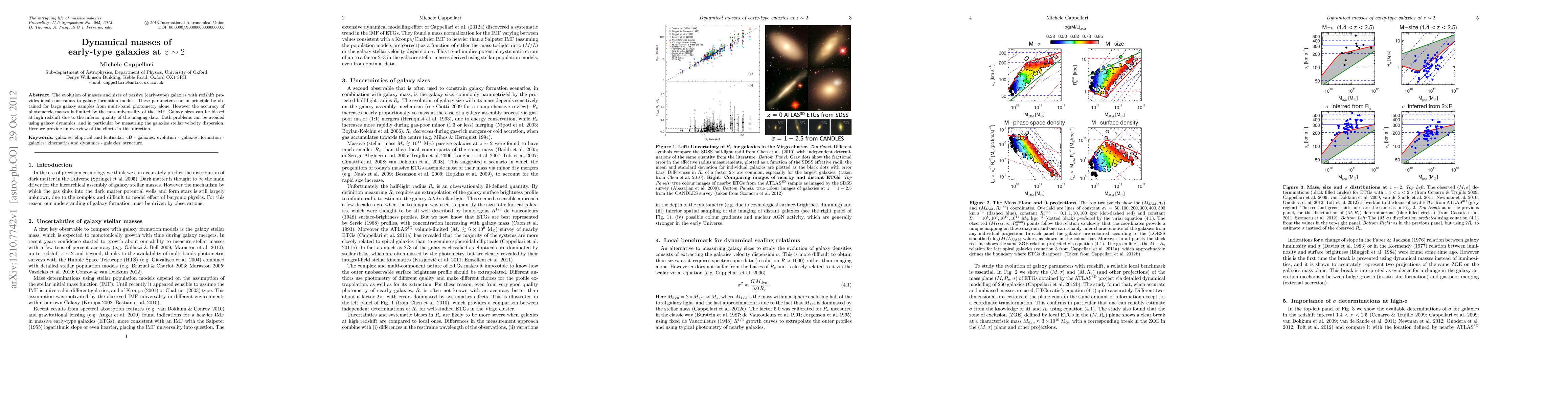 This paper reviews efforts to determine the dynamical masses of early-type galaxies at redshifts around z~2 using stellar velocity dispersions, avoiding the limitations of photometric mass estimates due to non-universality of the IMF and high-redshift imaging biases. The focus is on the potential of galaxy dynamics to provide more accurate mass and size constraints for galaxy formation models.