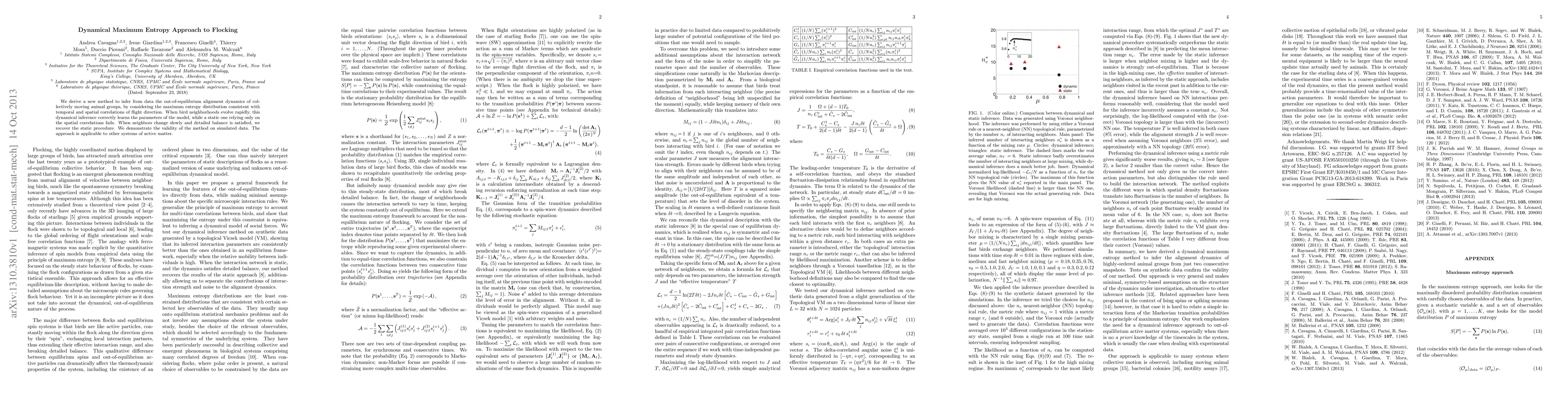 We derive a new method to infer from data the out-of-equilibrium alignment dynamics of collectively moving animal groups, by considering the maximum entropy distribution consistent with temporal and spatial correlations of flight direction. When bird neighborhoods evolve rapidly, this dynamical inference correctly learns the parameters of the model, while a static one relying only on the spatial correlations fails. When neighbors change slowly and detailed balance is satisfied, we recover the static procedure. We demonstrate the validity of the method on simulated data. The approach is applicable to other systems of active matter.