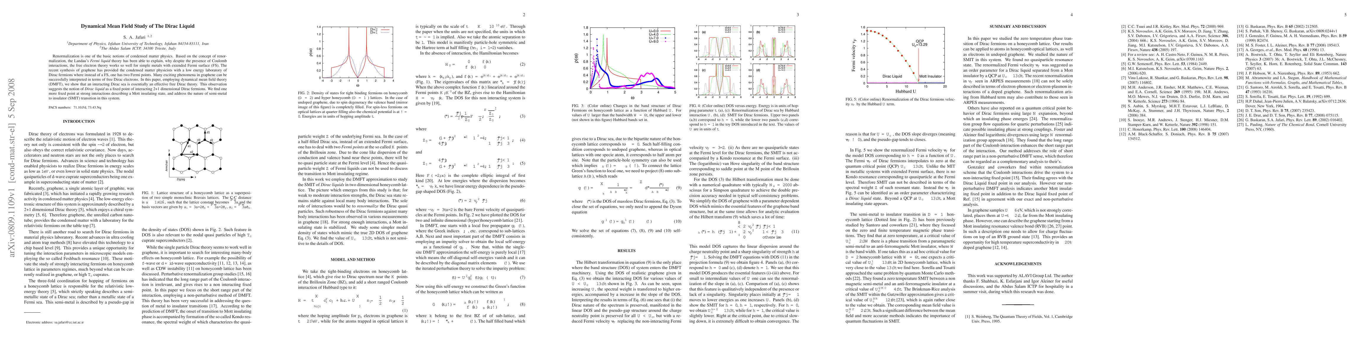 Renormalization is one of the basic notions of condensed matter physics. Based on the concept of renormalization, the Landau's {\em Fermi liquid} theory has been able to explain, why despite the presence of Coulomb interactions, the free electron theory works so well for simple metals with extended Fermi surface (FS). The recent synthesis of graphene has provided the condensed matter physicists with a low energy laboratory of Dirac fermions where instead of a FS, one has two Fermi points. Many exciting phenomena in graphene can be successfully interpreted in terms of free Dirac electrons. In this paper, employing dynamical mean field theory (DMFT), we show that an interacting Dirac sea is essentially an effective free Dirac theory. This observation suggests the notion of {\em Dirac liquid} as a fixed point of interacting 2+1 dimensional Dirac fermions. We find one more fixed point at strong interactions describing a Mott insulating state, and address the nature of semi-metal to insulator (SMIT) transition in this system.