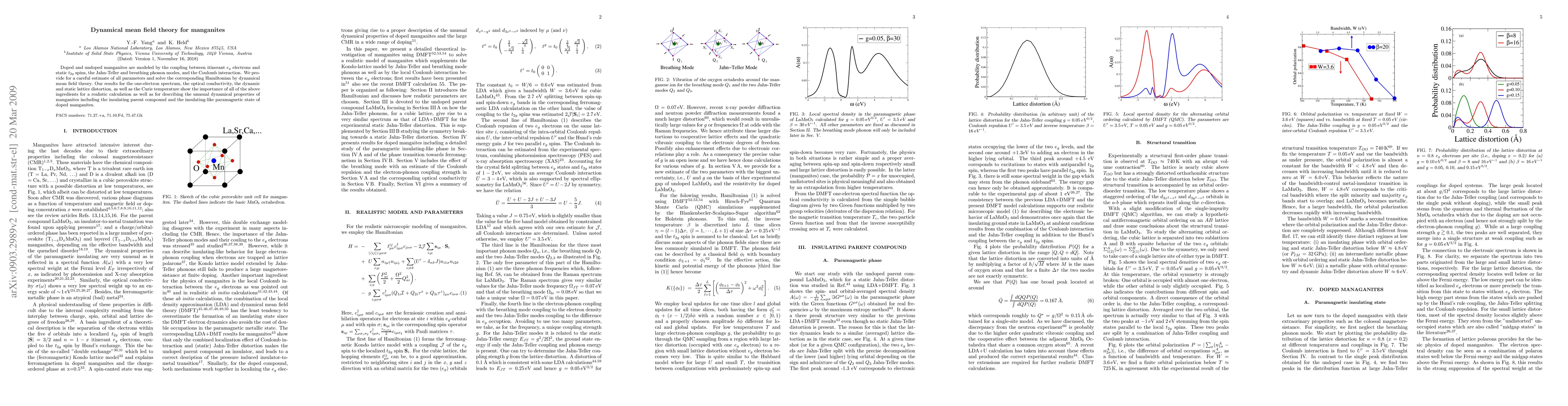 The paper presents a detailed DMFT study of manganites, incorporating electron-electron, electron-phonon interactions, and Hund's rule coupling, which successfully describes both structural transitions and electronic properties of doped and undoped manganites.