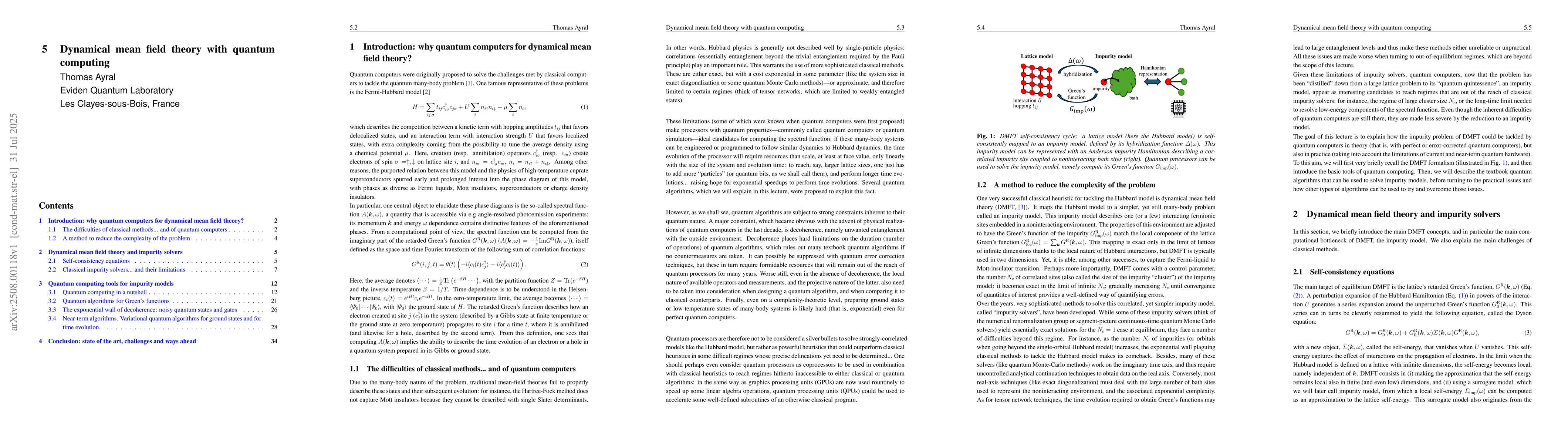 Near-term quantum processors are limited in terms of the number of qubits and gates they can afford. They nevertheless give unprecedented access to programmable quantum systems that can efficiently, although imperfectly, simulate quantum time evolutions. Dynamical mean field theory, on the other hand, maps strongly-correlated lattice models like the Hubbard model onto simpler, yet still many-body models called impurity models. Its computational bottleneck boils down to investigating the dynamics of the impurity upon addition or removal of one particle. This task is notoriously difficult for classical algorithms, which has warranted the development of specific classical algorithms called "impurity solvers" that work well in some regimes, but still struggle to reach some parameter regimes. In these lecture notes, we introduce the tools and methods of quantum computing that could be used to overcome the limitations of these classical impurity solvers, either in the long term -- with fully quantum algorithms, or in the short term -- with hybrid quantum-classical algorithms.