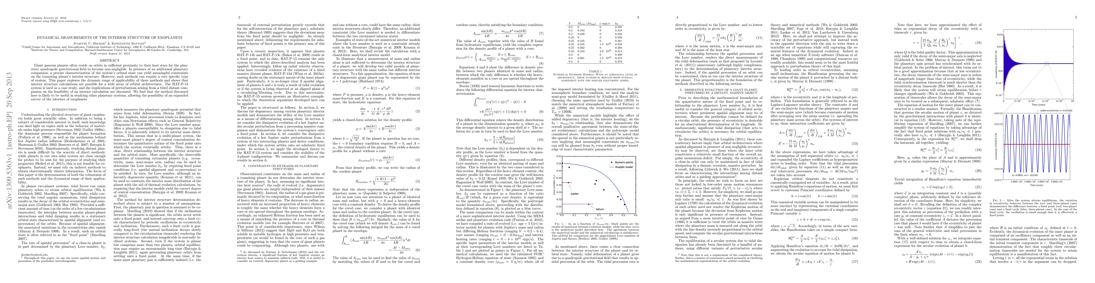 Giant gaseous planets often reside on orbits in sufficient proximity to their host stars for the planetary quadrupole gravitational field to become non-negligible. In presence of an additional planetary companion, a precise characterization of the system's orbital state can yield meaningful constraints on the transiting planet's interior structure. However, such methods can require a very specific type of system. This paper explores the dynamic range of applicability of these methods and shows that interior structure calculations are possible for a wide array of orbital architectures. The HAT-P-13 system is used as a case study, and the implications of perturbations arising from a third distant companion on the feasibility of an interior calculation are discussed. We find that the method discussed here is likely to be useful in studying other planetary systems, allowing the possibility of an expanded survey of the interiors of exoplanets.