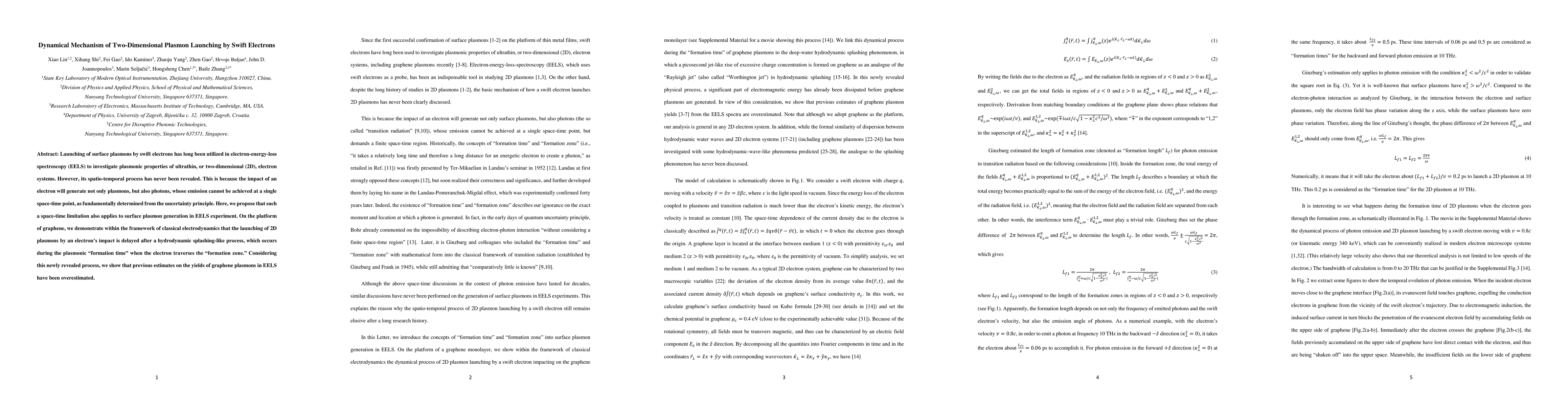 Launching of surface plasmons by swift electrons has long been utilized in electron-energy-loss spectroscopy (EELS) to investigate plasmonic properties of ultrathin, or two-dimensional (2D), electron systems. However, its spatio-temporal process has never been revealed. This is because the impact of an electron will generate not only plasmons, but also photons, whose emission cannot be achieved at a single space-time point, as fundamentally determined from the uncertainty principle. Here, we propose that such a space-time limitation also applies to surface plasmon generation in EELS experiment. On the platform of graphene, we demonstrate within the framework of classical electrodynamics that the launching of 2D plasmons by an electron's impact is delayed after a hydrodynamic splashing-like process, which occurs during the plasmonic "formation time" when the electron traverses the "formation zone." Considering this newly revealed process, we show that previous estimates on the yields of graphene plasmons in EELS have been overestimated.