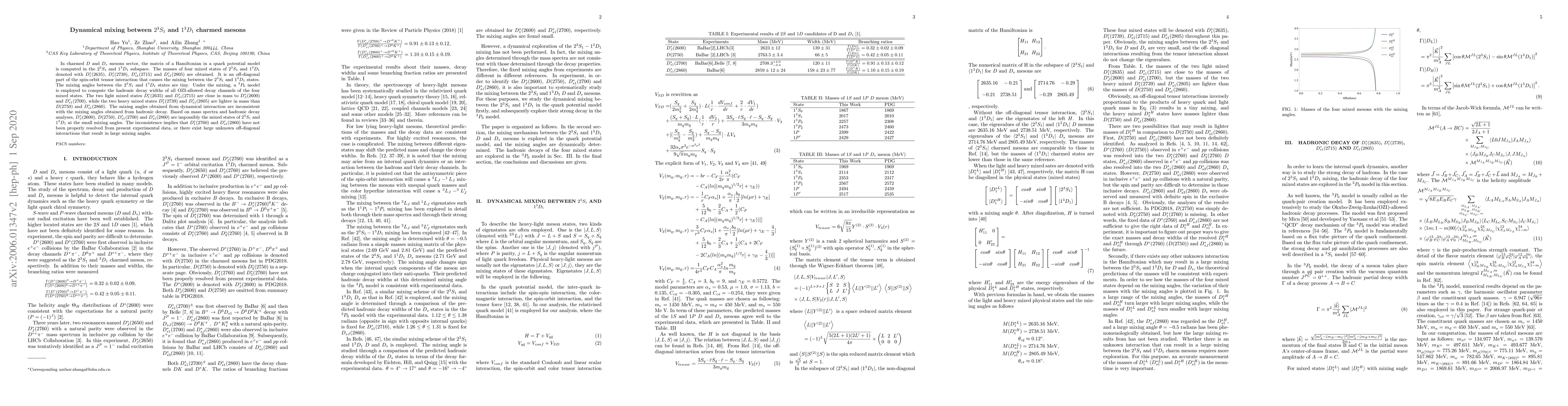 This paper investigates dynamical mixing between $2^3S_1$ and $1^3D_1$ charmed mesons using a quark potential model, finding tiny mixing angles and predicting the masses of mixed states. The study concludes that current experimental data does not support the identification of certain states as $2^3S_1$ and $1^3D_1$ mixtures due to inconsistencies in mixing angles.