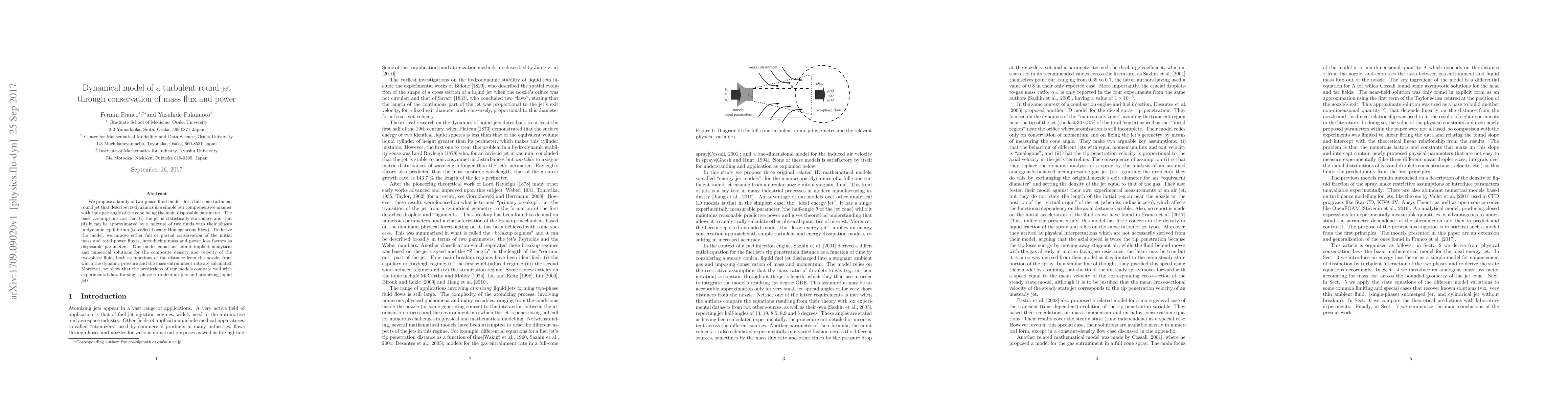 Researchers developed a simple model to predict the dynamics of a turbulent round jet, focusing on conservation of mass flux and power, with promising results compared to experimental data.