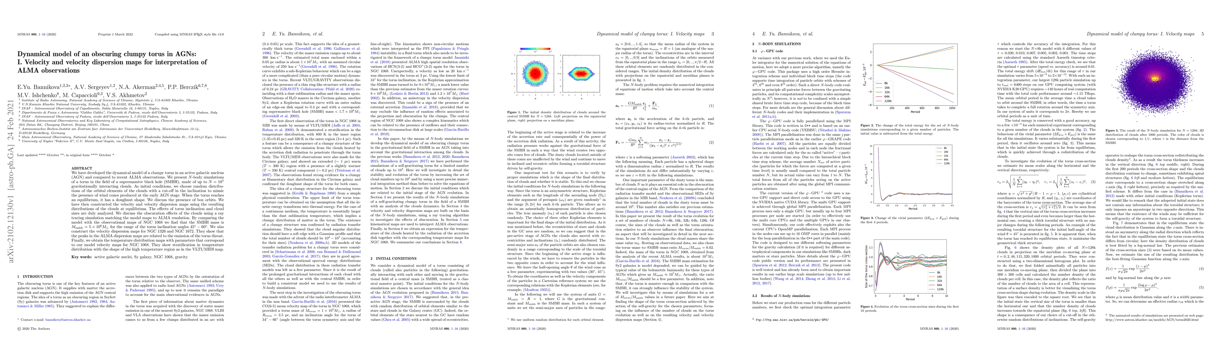 Researchers developed a model of an obscuring clumpy torus in active galactic nuclei (AGNs) to interpret ALMA observations, finding the black hole mass is $5 imes 10^6 M_igodot$ for certain torus inclinations and showing stratification in temperature distribution.