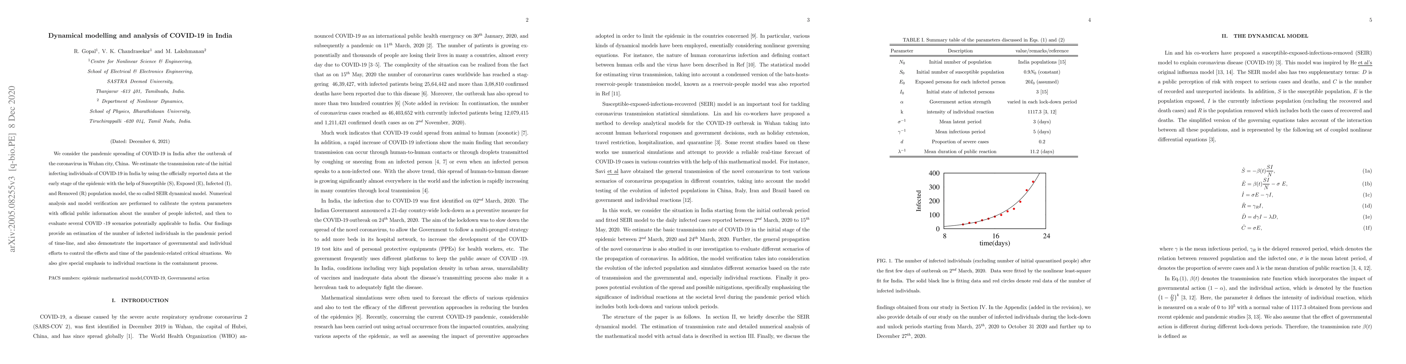 A mathematical model was developed to simulate the spread of COVID-19 in India, taking into account individual reactions and government actions.
