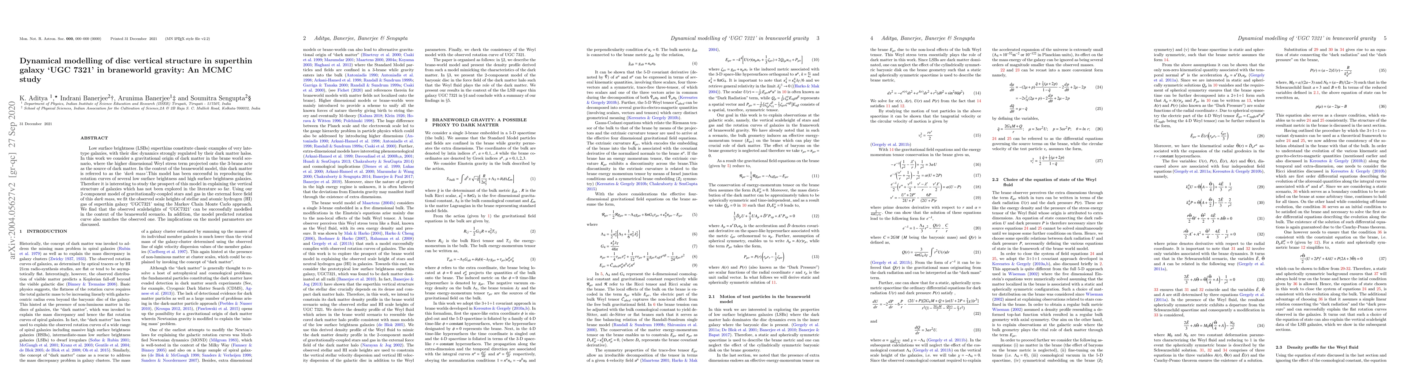 A study uses braneworld gravity to model the vertical structure of a superthin galaxy, finding that it successfully reproduces observed scale heights and rotation curves.