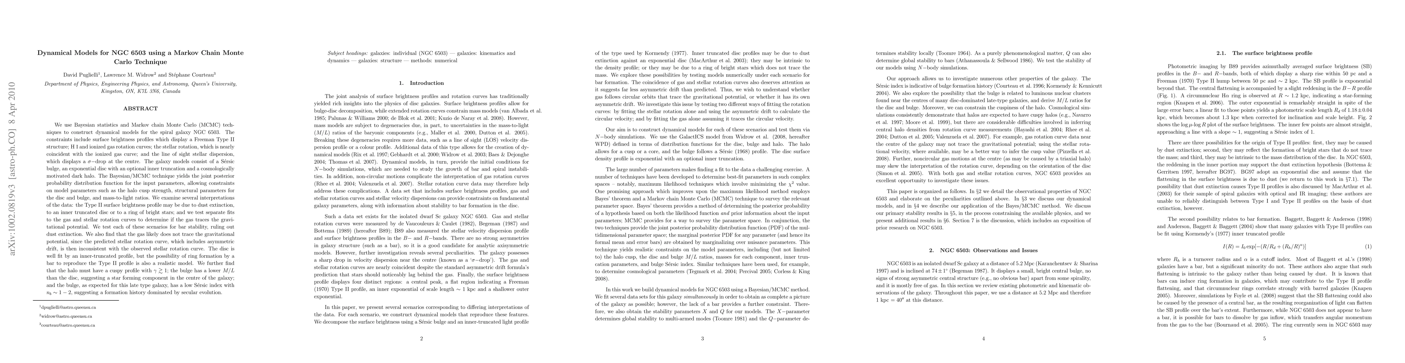 This paper employs Bayesian statistics and Markov Chain Monte Carlo techniques to develop dynamical models for the spiral galaxy NGC 6503, incorporating various observational constraints. The analysis finds that the galaxy's Type II surface brightness profile is likely due to an inner-truncated disc or a ring of bright stars, and that the gas rotation curve does not trace the gravitational potential.