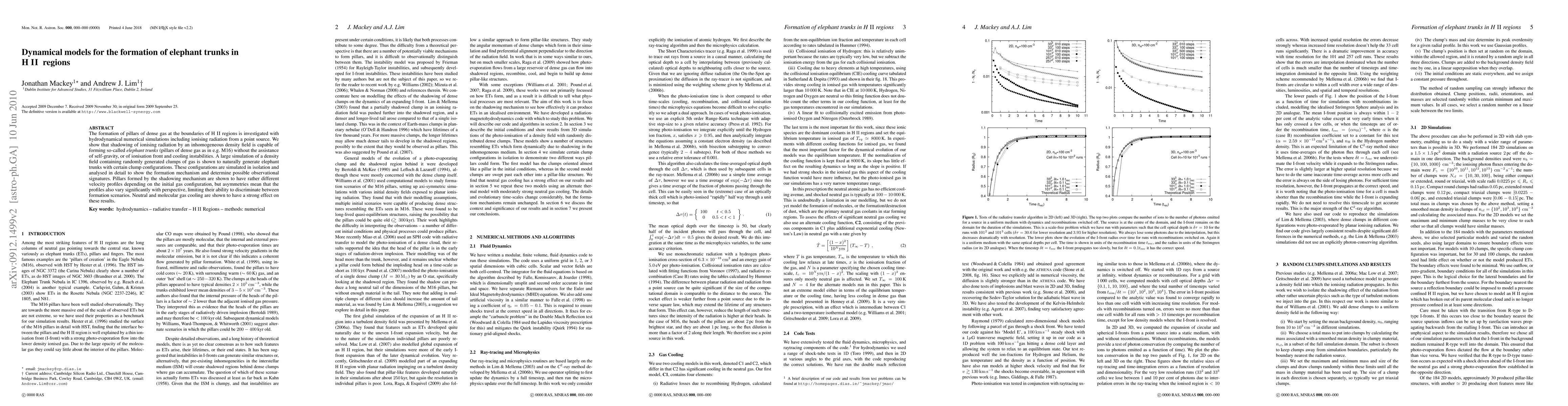 Researchers used simulations to show that shadowing of ionising radiation can form 'elephant trunks' (pillars of dense gas) in H II Regions without needing gravity or other instabilities, offering new insights into their formation mechanism.