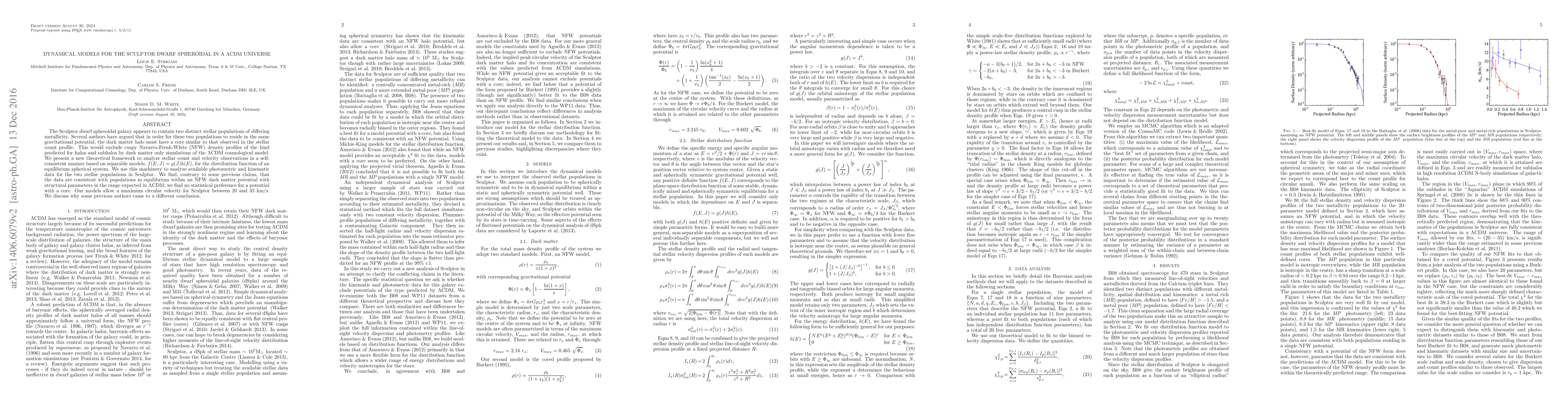 This paper presents a new dynamical model to analyze the Sculptor dwarf galaxy's stellar populations, finding that they can coexist in an NFW dark matter halo, contrary to previous claims that required a cored dark matter profile. The study concludes that the data supports an NFW potential within the expected Lambda-CDM model parameters.