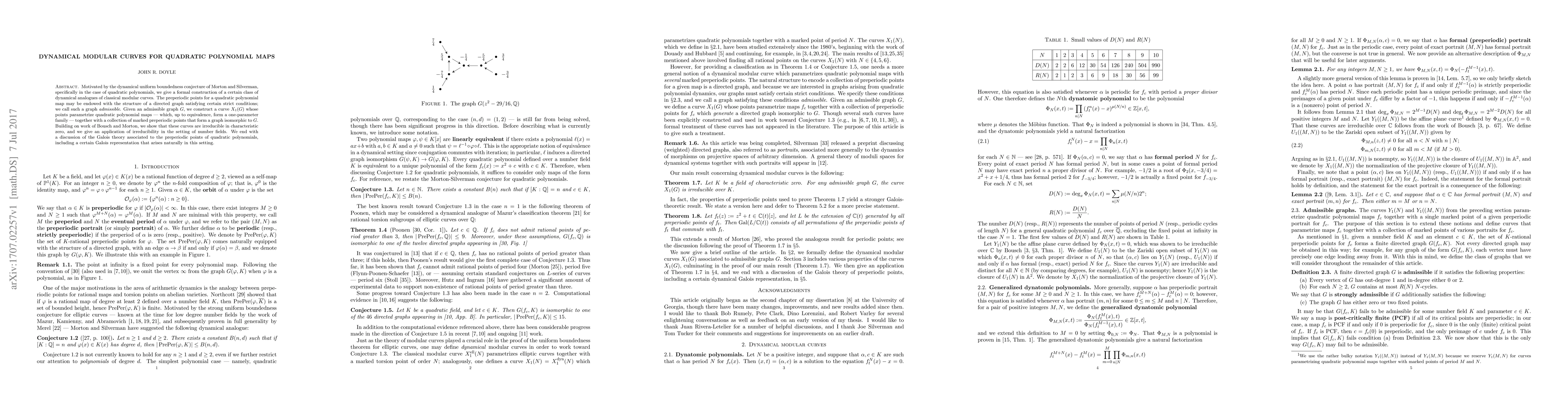 This paper constructs dynamical modular curves for quadratic polynomial maps, showing they are irreducible in characteristic zero and applying this to the study of preperiodic points. It also explores the associated Galois theory and representations.
