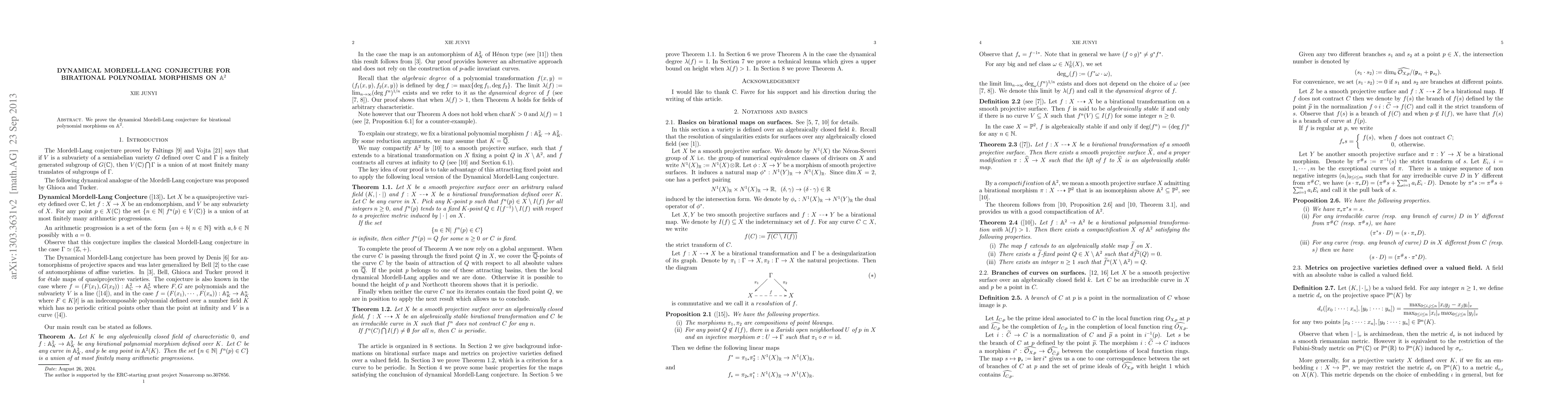 Summary: This paper proves the dynamical Mordell-Lang conjecture for birational polynomial morphisms acting on the affine plane $\mathbb{A}^2$. The result extends the classical Mordell-Lang theorem to a dynamical setting.