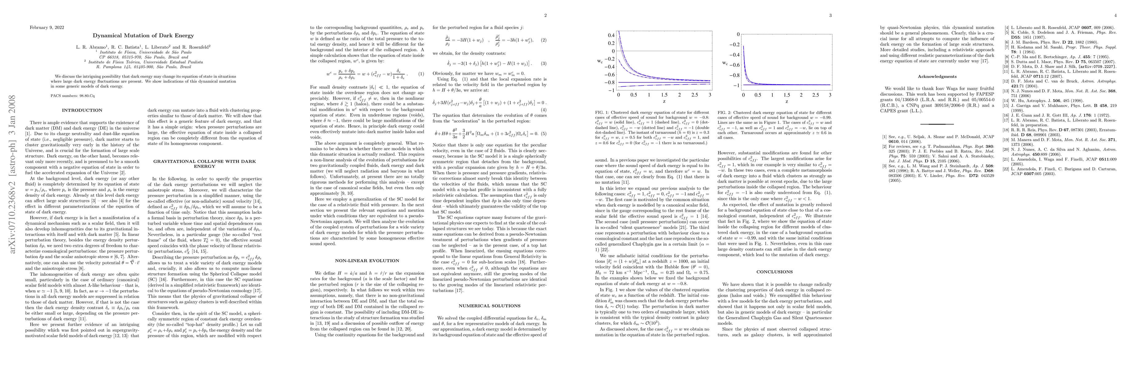 We discuss the intriguing possibility that dark energy may change its equation of state in situations where large dark energy fluctuations are present. We show indications of this dynamical mutation in some generic models of dark energy.