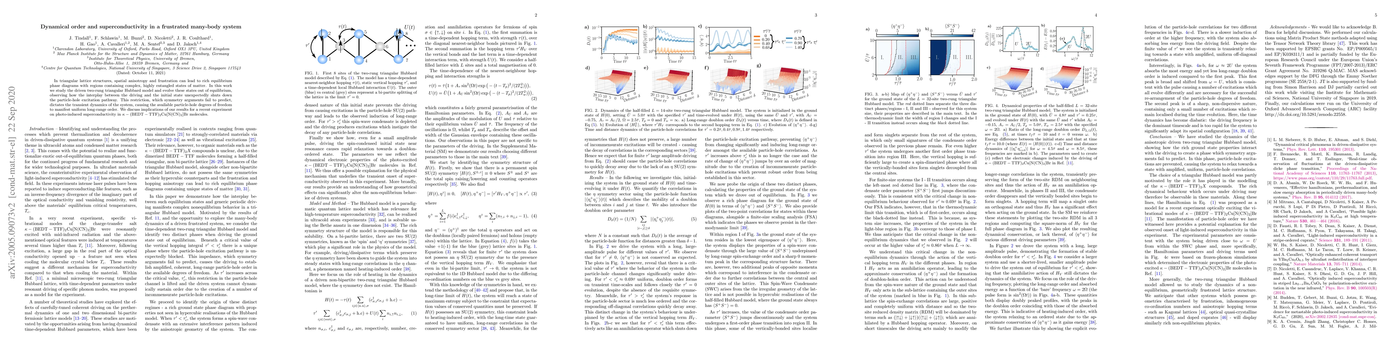 Researchers studied a triangular lattice system driven out of equilibrium and found that an unexpected restriction on particle-hole excitation led to the emergence of long-range order in superconductivity. The findings have implications for recent experiments on photo-induced superconductivity in certain molecules.