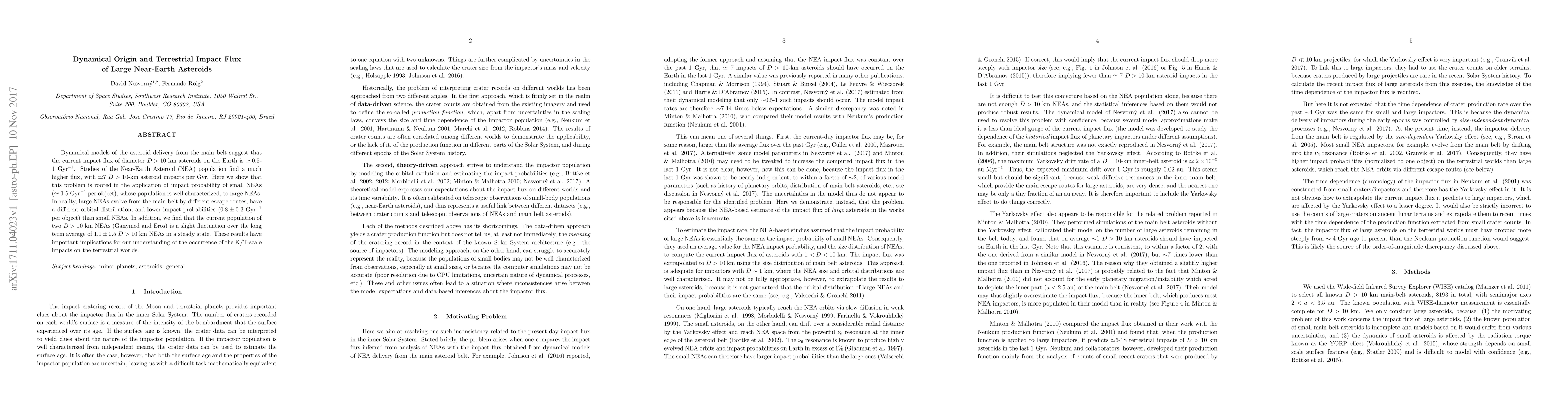 New research suggests that the impact flux of large near-Earth asteroids (D>10 km) is much lower than previously thought, with an estimated 0.8-1.3 impacts per Gyr, and may be the key to understanding the occurrence of major asteroid impacts in the past.