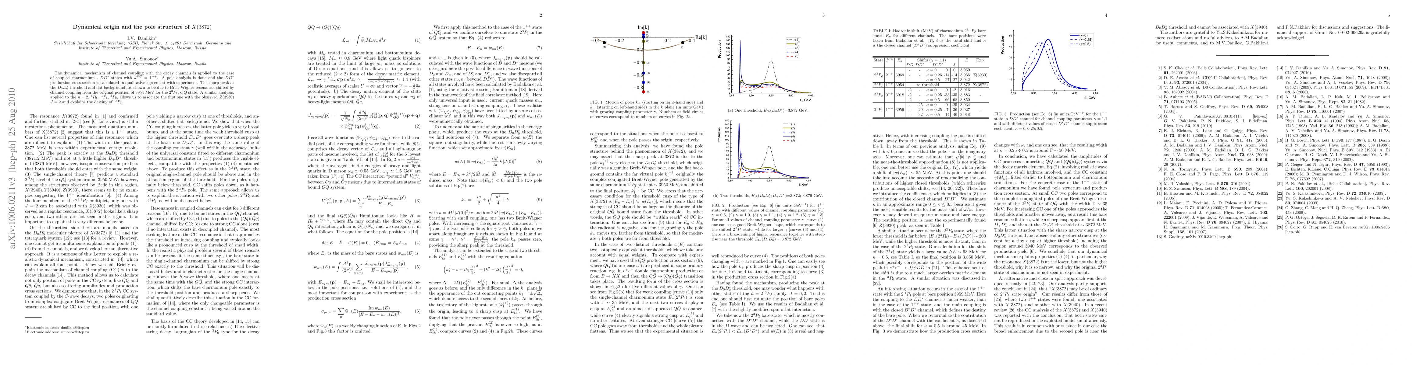 The dynamical mechanism of channel coupling with the decay channels is applied to the case of coupled charmonium - $DD^*$ states with $J^{PC}=1^{++}$. A pole analysis is done and the $DD^*$ production cross section is calculated in qualitative agreement with experiment. The sharp peak at the $D_0D^*_0$ threshold and flat background are shown to be due to Breit-Wigner resonance, shifted by channel coupling from the original position of 3954 MeV for the $2^3P_1$, $Q\bar Q$ state. A similar analysis, applied to the $n=2$, $^3P_2$, $^1P_1$, $^3P_0$, allows us to associate the first one with the observed $Z(3930)$ J=2 and explains the destiny of $^3P_0$.