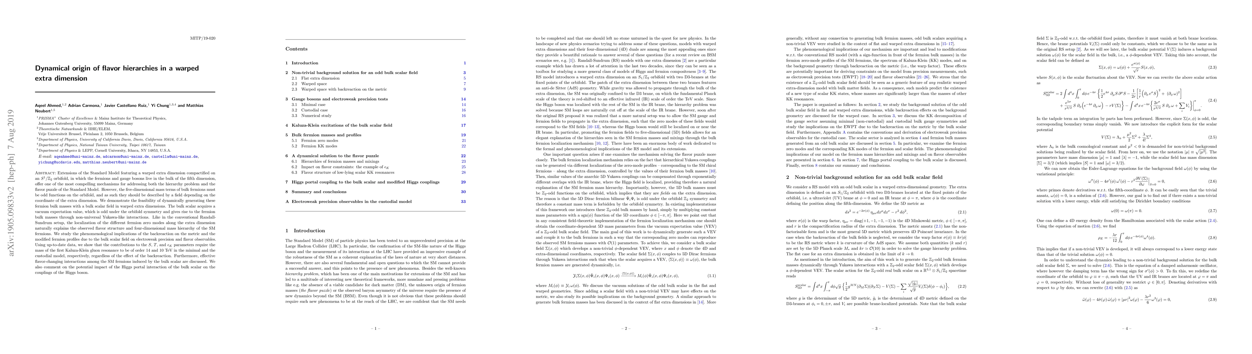 The paper presents a novel method for dynamically generating fermion bulk masses using a bulk scalar field in a warped extra dimension model, offering a solution to both the hierarchy and flavor puzzles.