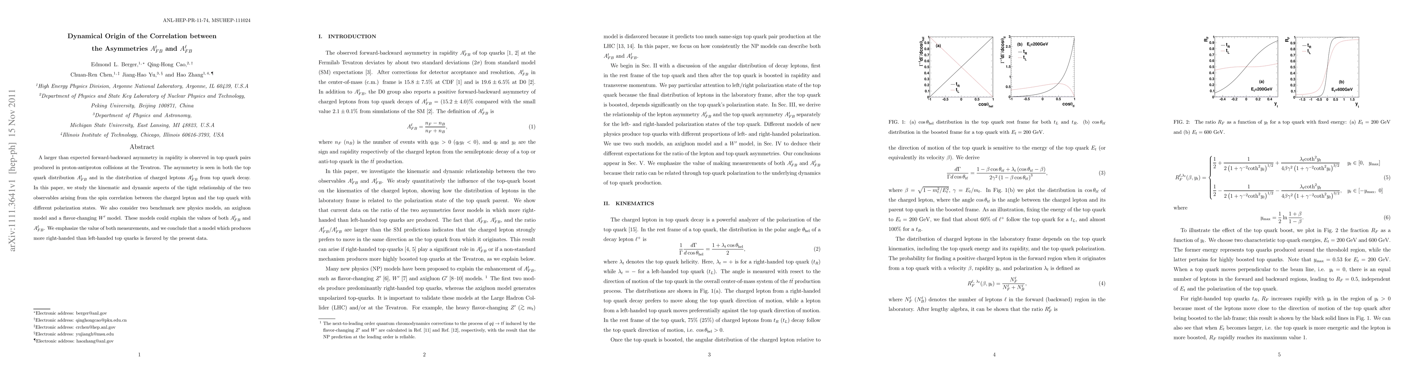 This paper investigates the observed correlation between the forward-backward asymmetries in top quark pairs and charged leptons from top decay in proton-antiproton collisions, suggesting a dynamical origin tied to spin correlations. It also explores potential new physics models, favoring those that produce more right-handed top quarks.
