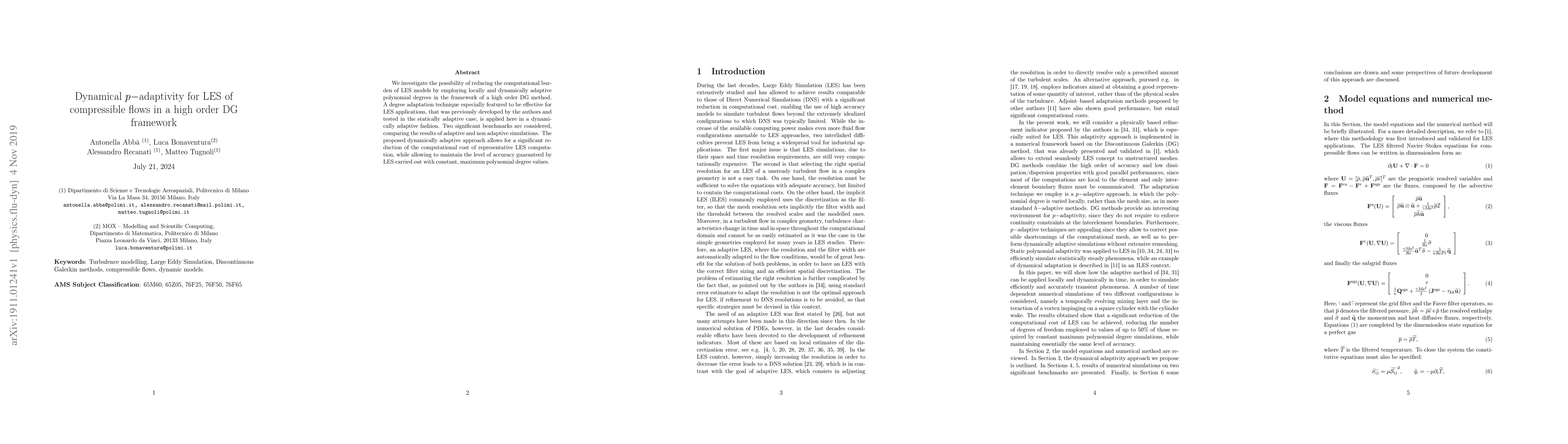We investigate the possibility of reducing the computational burden of LES models by employing locally and dynamically adaptive polynomial degrees in the framework of a high order DG method. A degree adaptation technique especially featured to be effective for LES applications, that was previously developed by the authors and tested in the statically adaptive case, is applied here in a dynamically adaptive fashion. Two significant benchmarks are considered, comparing the results of adaptive and non adaptive simulations. The proposed dynamically adaptive approach allows for a significant reduction of the computational cost of representative LES computation, while allowing to maintain the level of accuracy guaranteed by LES carried out with constant, maximum polynomial degree values.