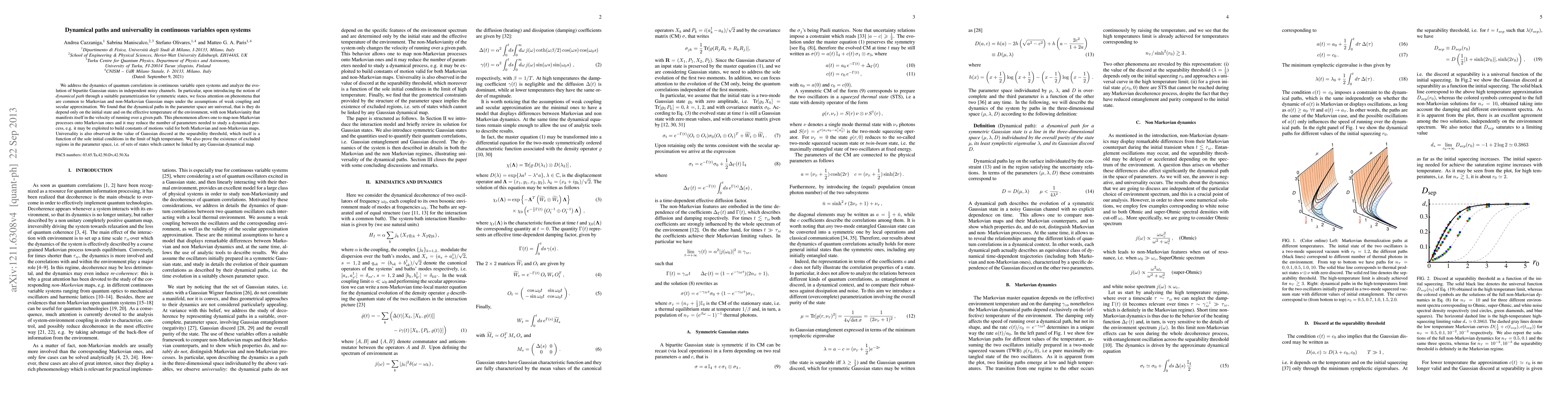 We address the dynamics of quantum correlations in continuous variable open systems and analyze the evolution of bipartite Gaussian states in independent noisy channels. In particular, upon introducing the notion of dynamical path through a suitable parametrization for symmetric states, we focus attention on phenomena that are common to Markovian and non-Markovian Gaussian maps under the assumptions of weak coupling and secular approximation. We found that the dynamical paths in the parameter space are universal, that is they do depend only on the initial state and on the effective temperature of the environment, with non Markovianity that manifests itself in the velocity of running over a given path. This phenomenon allows one to map non-Markovian processes onto Markovian ones and it may reduce the number of parameters needed to study a dynamical process, e.g. it may be exploited to build constants of motions valid for both Markovian and non-Markovian maps. Universality is also observed in the value of Gaussian discord at the separability threshold, which itself is a function of the sole initial conditions in the limit of high temperature. We also prove the existence of excluded regions in the parameter space, i.e. of sets of states which cannot be linked by any Gaussian dynamical map.