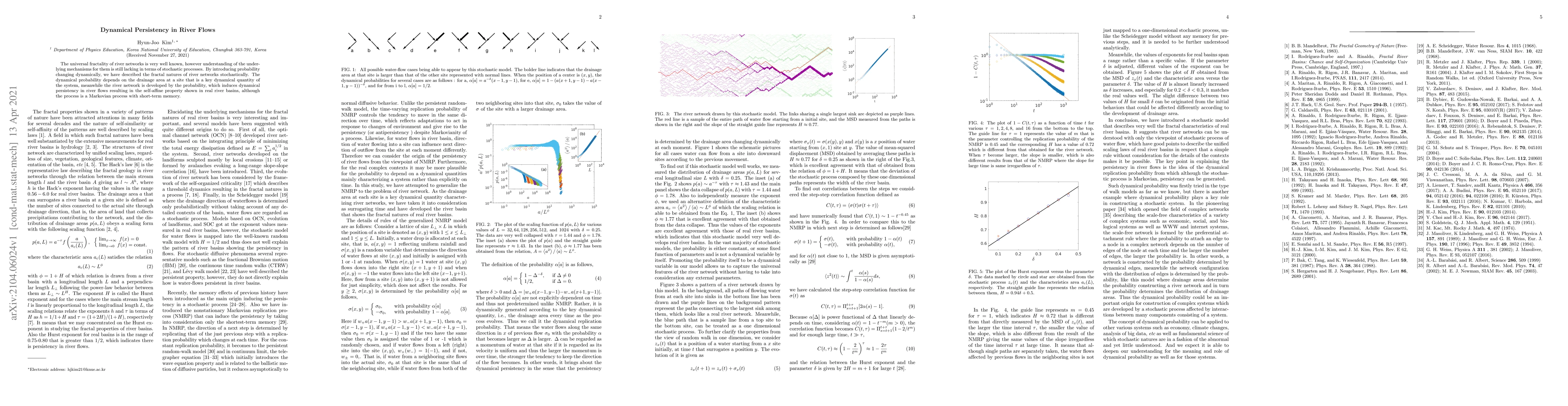 This paper introduces a stochastic model to describe the fractal nature of river networks, where dynamic probability linked to the drainage area induces dynamical persistency in river flows, resulting in self-affine properties observed in real river basins, despite the Markovian nature of the process.
