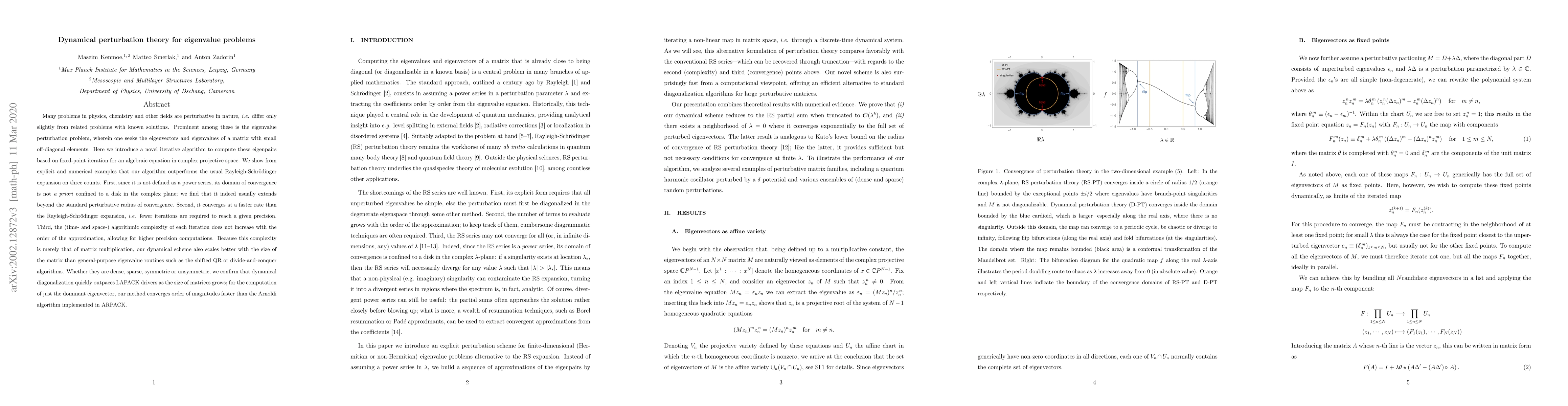 This research introduces a new iterative algorithm for computing eigenvalues and eigenvectors of matrices with small off-diagonal elements, outperforming the traditional Rayleigh-Schrödinger expansion. The novel method, based on fixed-point iteration in complex projective space, converges faster, extends beyond standard convergence limits, and scales better with matrix size than existing eigenvalue routines.