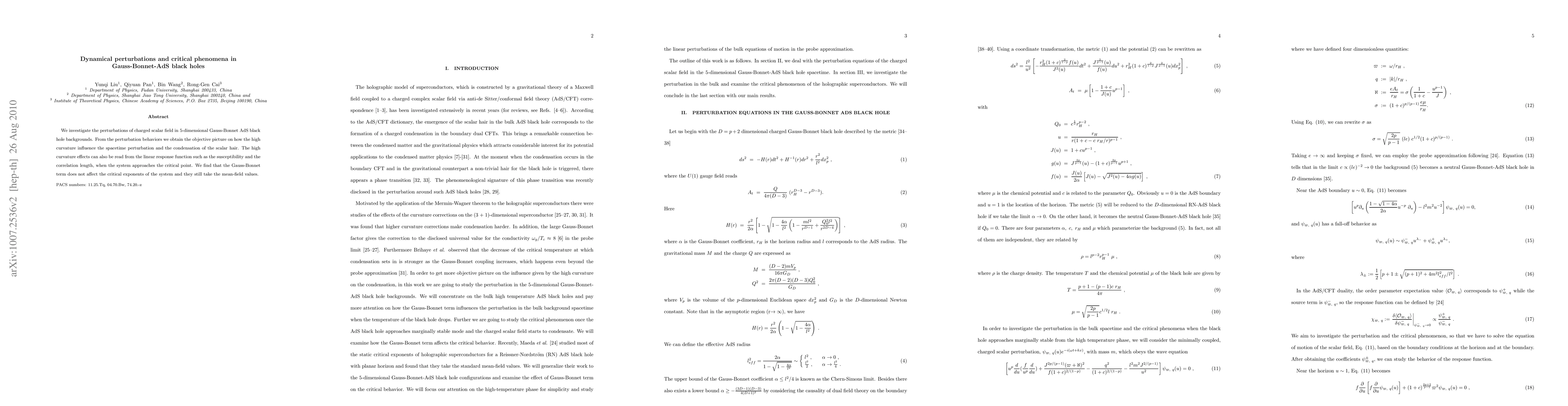 We investigate the perturbations of charged scalar field in $5$-dimensional Gauss-Bonnet AdS black hole backgrounds. From the perturbation behaviors we obtain the objective picture on how the high curvature influence the spacetime perturbation and the condensation of the scalar hair. The high curvature effects can also be read from the linear response function such as the susceptibility and the correlation length, when the system approaches the critical point. We find that the Gauss-Bonnet term does not affect the critical exponents of the system and they still take the mean-field values.