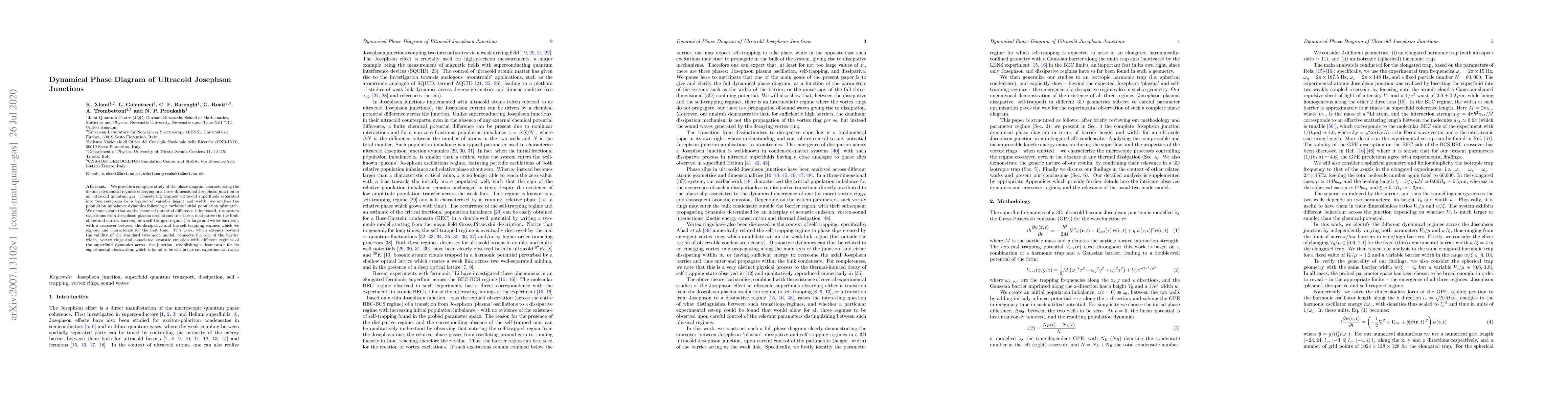 Researchers studied ultracold Josephson junctions in a superfluid, finding that varying barrier widths lead to distinct dynamical regimes, including self-trapping and dissipative behavior, which can be observed experimentally.