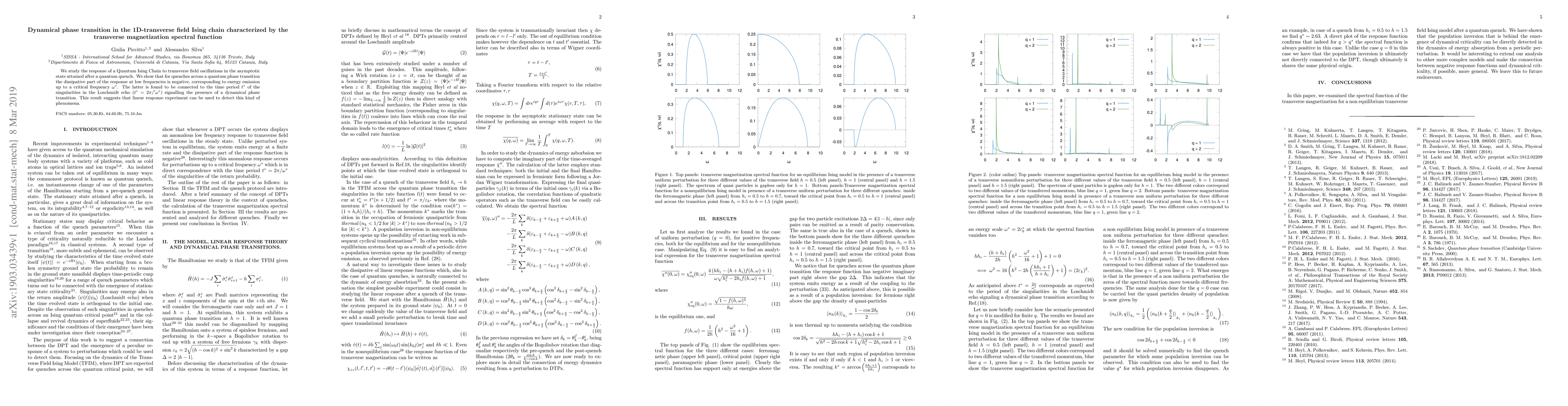 This paper investigates the dynamical phase transition in a 1D transverse field Ising chain through a composite quantum quench, revealing that the spectral function vanishes at the transition point, indicating criticality and suggesting linear response experiments can detect such transitions.