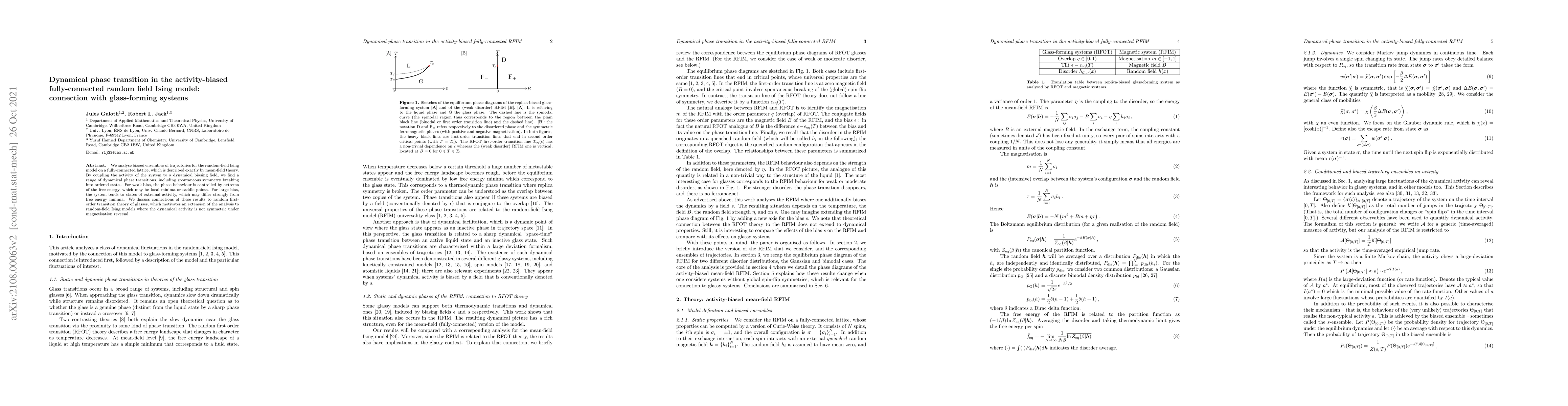 This paper investigates dynamical phase transitions in the fully-connected random field Ising model under activity-biased dynamics, revealing spontaneous symmetry breaking and connections to glass-forming systems. The study extends the analysis to asymmetric dynamical activity, linking these findings to the random first-order transition theory of glasses.