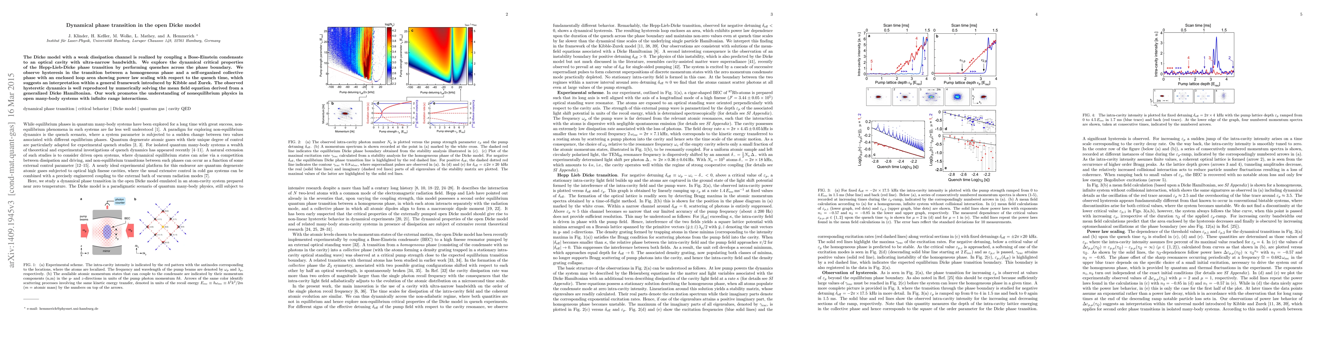 This research investigates the dynamical phase transition in the open Dicke model, observing hysteresis in transitions between homogeneous and collective phases during quenches. The results show power law scaling in the enclosed loop area, consistent with Kibble-Zurek theory, and are well replicated by mean field calculations, enhancing comprehension of nonequilibrium dynamics in open many-body systems.