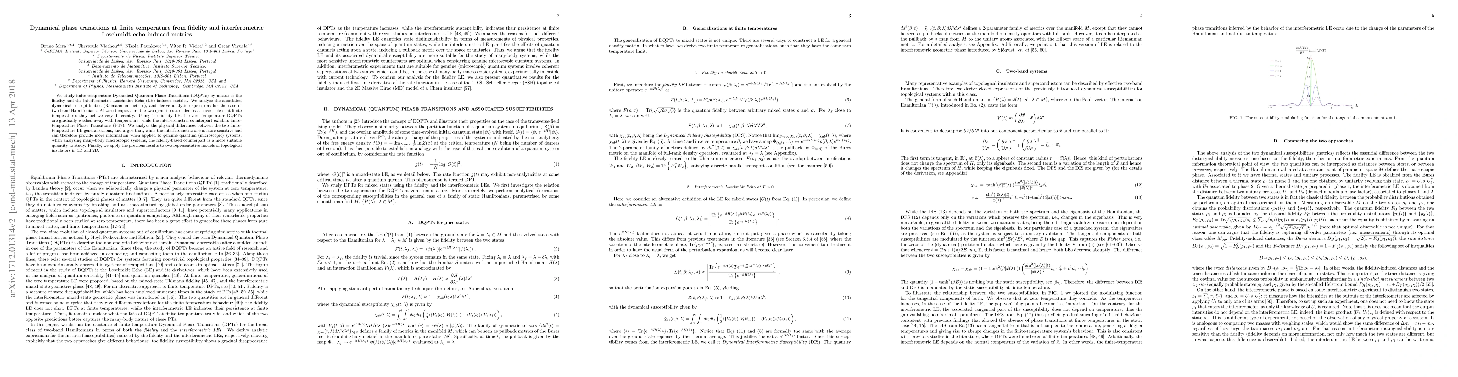 We study finite-temperature Dynamical Quantum Phase Transitions (DQPTs) by means of the fidelity and the interferometric Loschmidt Echo (LE) induced metrics. We analyse the associated dynamical susceptibilities (Riemannian metrics), and derive analytic expressions for the case of two-band Hamiltonians. At zero temperature the two quantities are identical, nevertheless, at finite temperatures they behave very differently. Using the fidelity LE, the zero temperature DQPTs are gradually washed away with temperature, while the interferometric counterpart exhibits finite-temperature Phase Transitions (PTs). We analyse the physical differences between the two finite-temperature LE generalisations, and argue that, while the interferometric one is more sensitive and can therefore provide more information when applied to genuine quantum (microscopic) systems, when analysing many-body macroscopic systems, the fidelity-based counterpart is a more suitable quantity to study. Finally, we apply the previous results to two representative models of topological insulators in 1D and 2D.