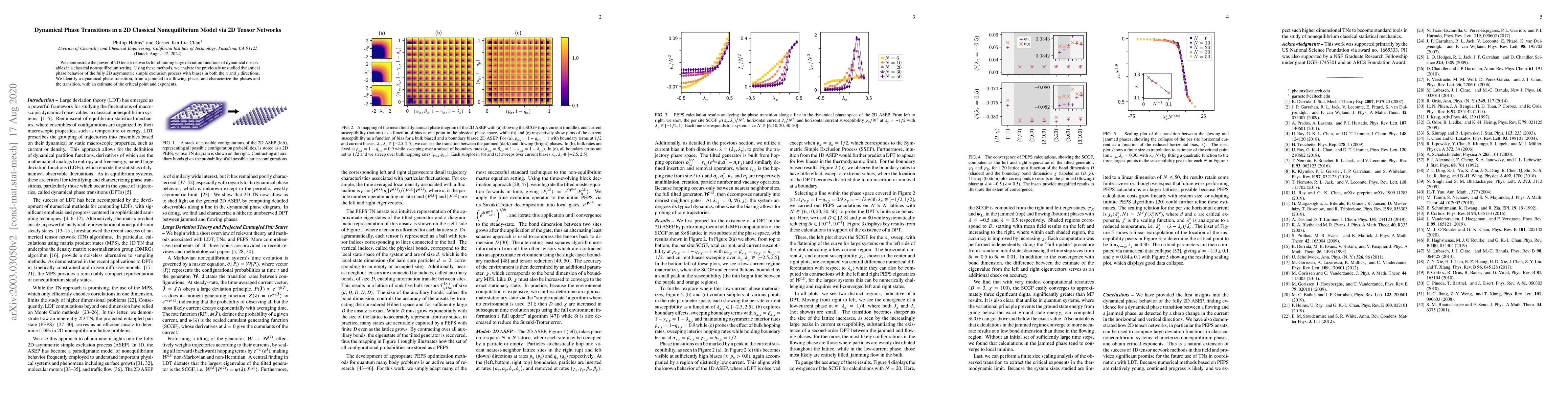 Researchers used 2D tensor networks to study a 2D classical model with biases in both x and y directions, identifying a dynamical phase transition from jammed to flowing phases.