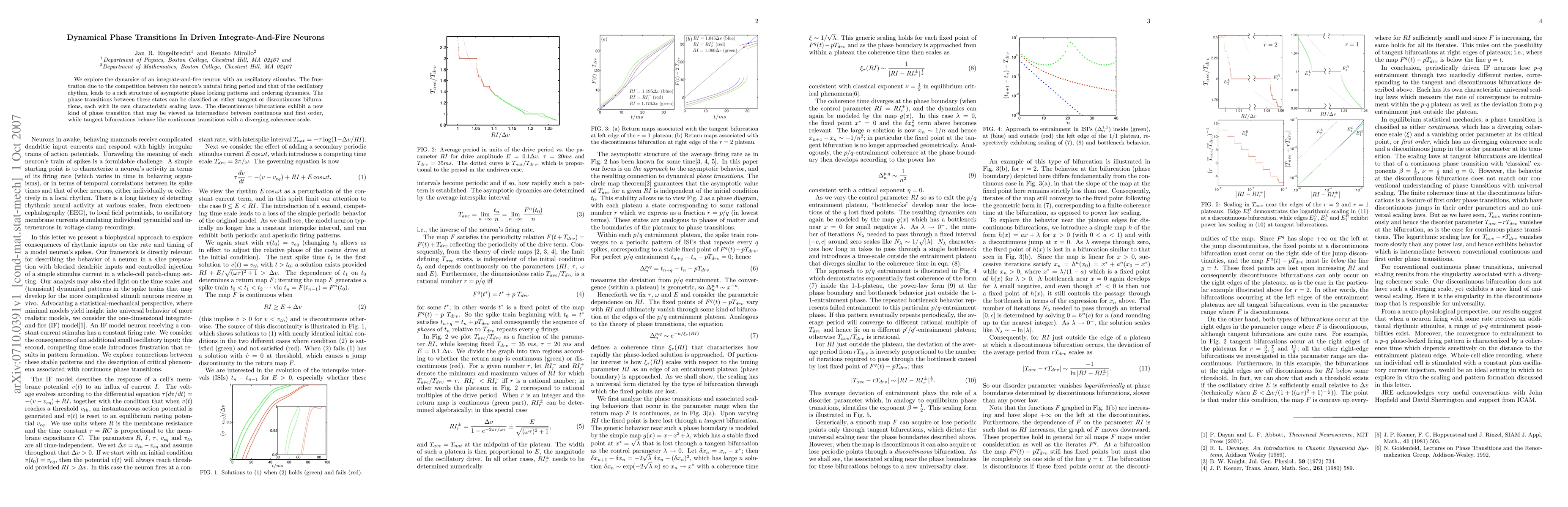 We explore the dynamics of an integrate-and-fire neuron with an oscillatory stimulus. The frustration due to the competition between the neuron's natural firing period and that of the oscillatory rhythm, leads to a rich structure of asymptotic phase locking patterns and ordering dynamics. The phase transitions between these states can be classified as either tangent or discontinuous bifurcations, each with its own characteristic scaling laws. The discontinuous bifurcations exhibit a new kind of phase transition that may be viewed as intermediate between continuous and first order, while tangent bifurcations behave like continuous transitions with a diverging coherence scale.