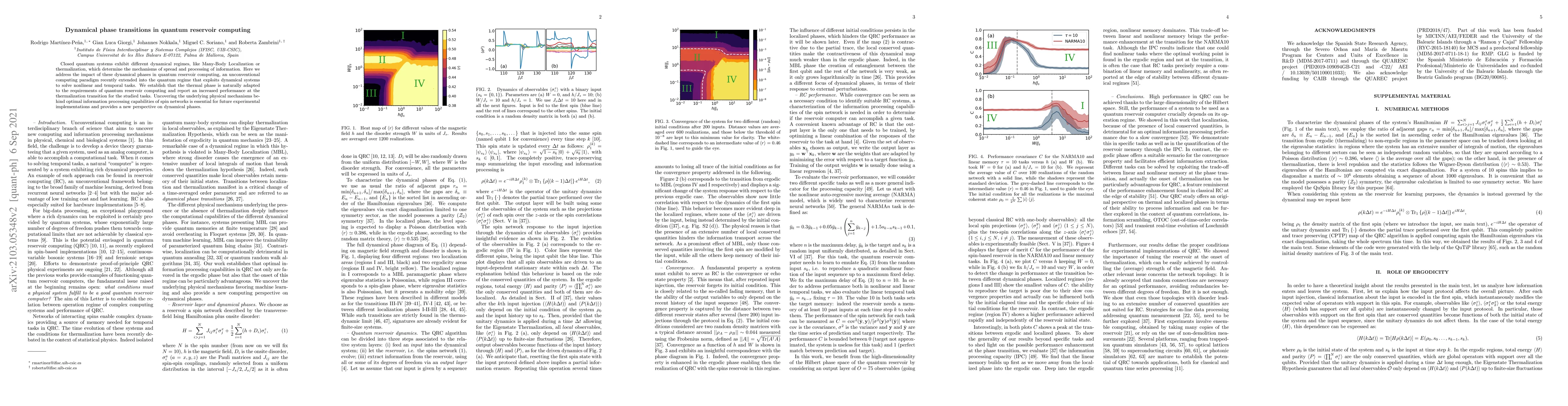 Closed quantum systems exhibit different dynamical regimes, like Many-Body Localization or thermalization, which determine the mechanisms of spread and processing of information. Here we address the impact of these dynamical phases in quantum reservoir computing, an unconventional computing paradigm recently extended into the quantum regime that exploits dynamical systems to solve nonlinear and temporal tasks. We establish that the thermal phase is naturally adapted to the requirements of quantum reservoir computing and report an increased performance at the thermalization transition for the studied tasks. Uncovering the underlying physical mechanisms behind optimal information processing capabilities of spin networks is essential for future experimental implementations and provides a new perspective on dynamical phases.