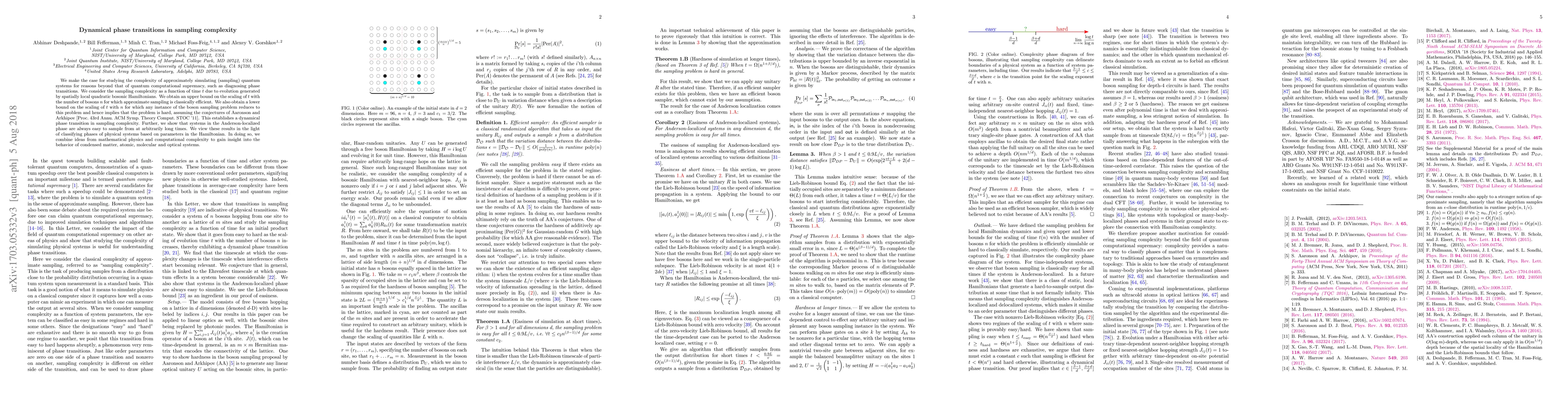 This paper investigates the sampling complexity of quantum systems, identifying a dynamical phase transition where approximate sampling becomes classically efficient or intractable based on time and system size. It combines mathematical physics with computational complexity to classify phases of physical systems.