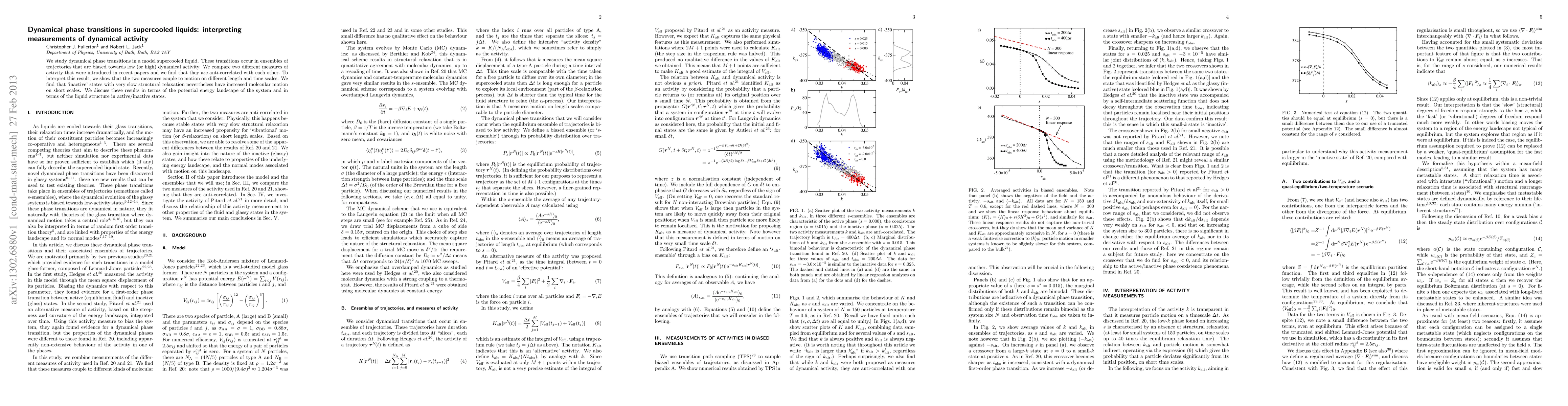 We study dynamical phase transitions in a model supercooled liquid. These transitions occur in ensembles of trajectories that are biased towards low (or high) dynamical activity. We compare two different measures of activity that were introduced in recent papers and we find that they are anti-correlated with each other. To interpret this result, we show that the two measures couple to motion on different length and time scales. We find that inactive states with very slow structural relaxation nevertheless have increased molecular motion on short scales. We discuss these results in terms of the potential energy landscape of the system and in terms of the liquid structure in active/inactive states.